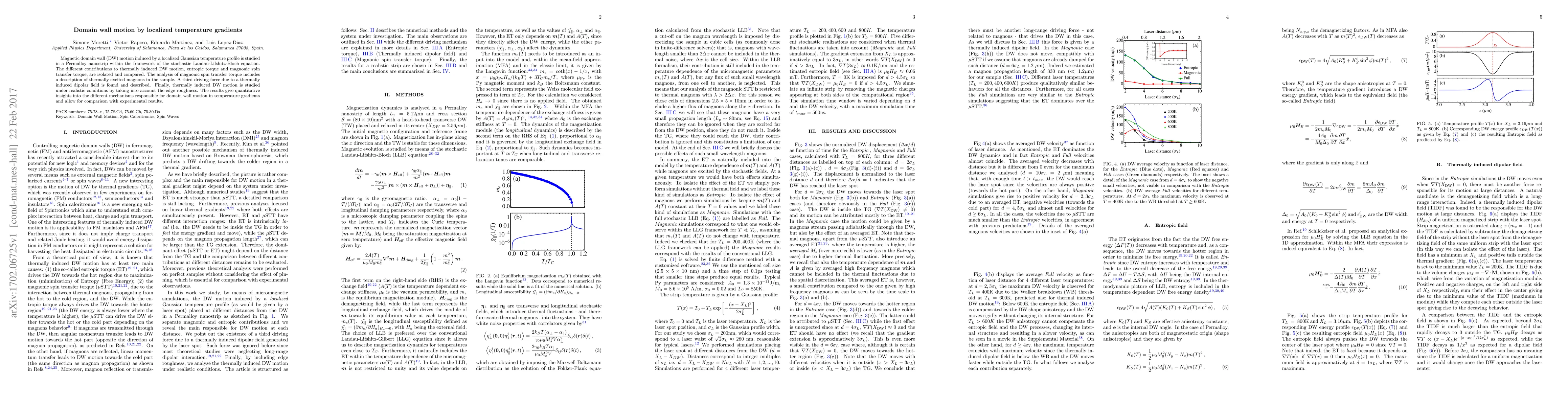 This paper investigates the motion of magnetic domain walls in a Permalloy nanostrip driven by localized temperature gradients, identifying entropic torque, magnonic spin transfer torque, and a new thermally induced dipolar field as key contributors. It provides quantitative insights into these mechanisms and considers the effects of edge roughness, enabling comparison with experimental observations.