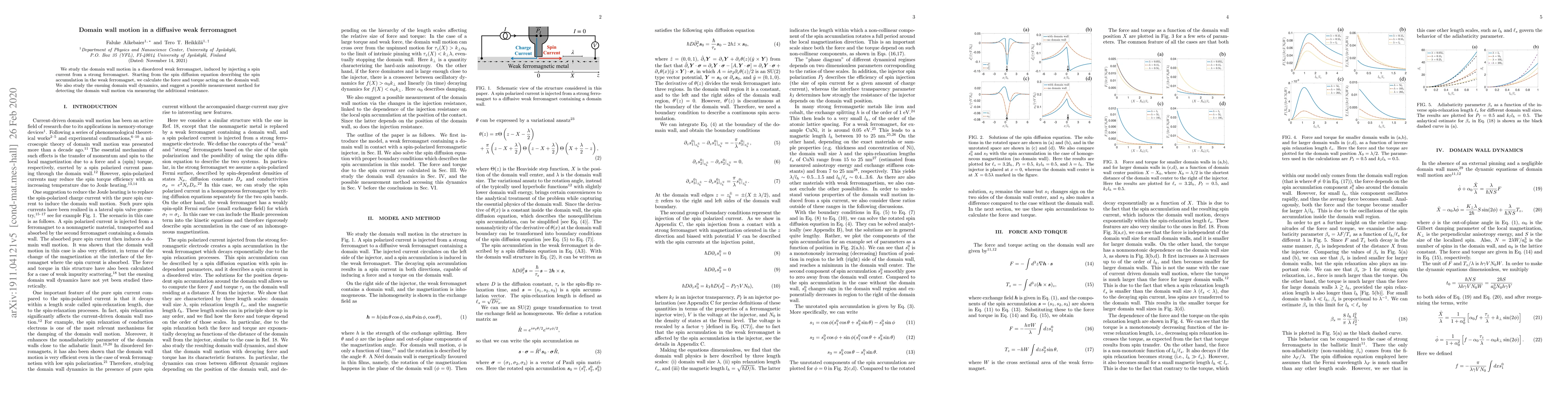 This paper investigates domain wall motion in disordered weak ferromagnets driven by spin currents from strong ferromagnets, calculating the forces and torques on the domain wall and proposing a method to detect wall motion via resistance measurement.