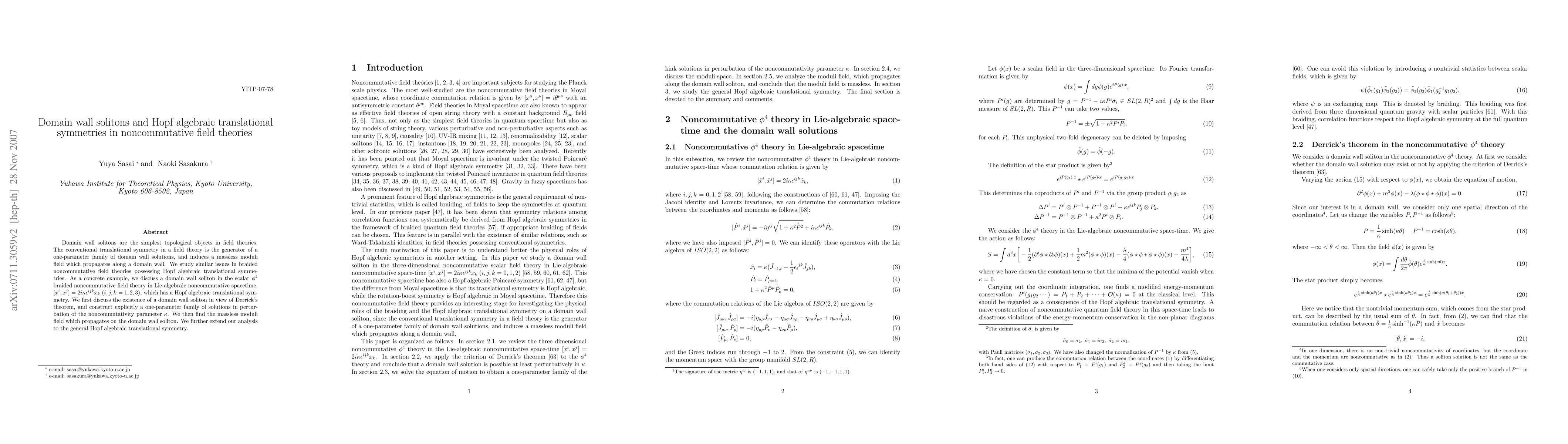 This paper investigates domain wall solitons in braided noncommutative field theories with Hopf algebraic translational symmetries, constructing a one-parameter family of soliton solutions and identifying a massless moduli field propagating along the domain wall, extending conventional translational symmetry analysis to this noncommutative framework.