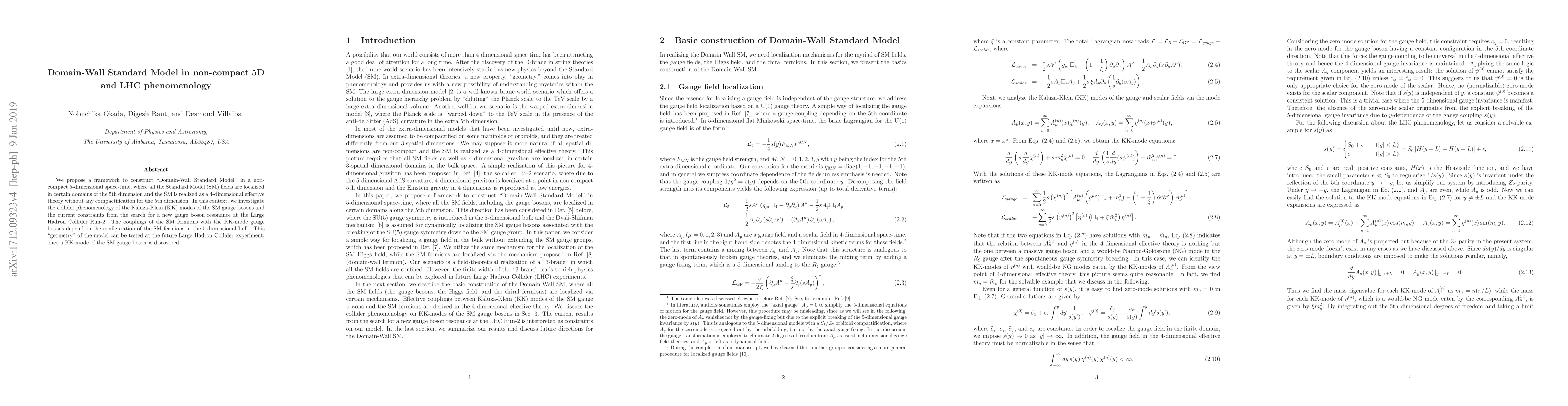 This paper proposes a "Domain-Wall Standard Model" in non-compact 5D space-time, localizing SM fields in the 5th dimension without compactification. It explores the collider phenomenology of SM gauge bosons' Kaluza-Klein modes and their potential discovery at the LHC, which would test the model's geometry.