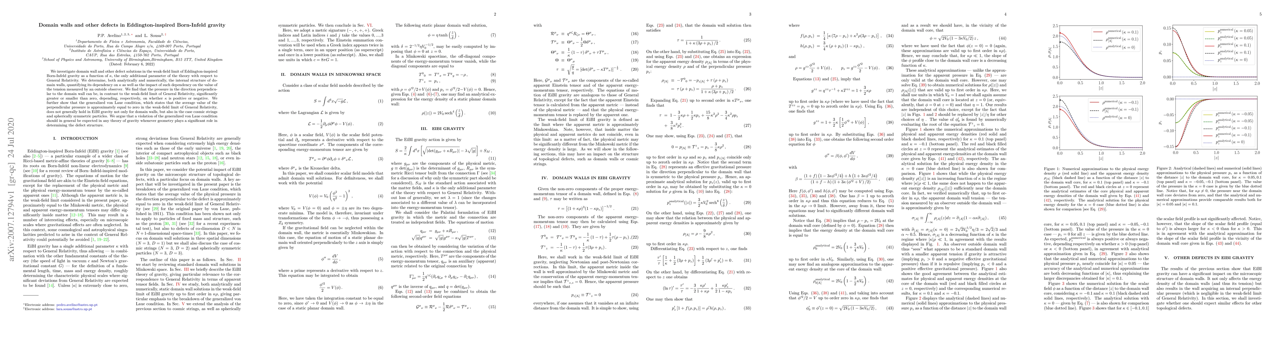 We investigate domain wall and other defect solutions in the weak-field limit of Eddington-inspired Born-Infeld gravity as a function of $\kappa$, the only additional parameter of the theory with respect to General Relativity. We determine, both analytically and numerically, the internal structure of domain walls, quantifying its dependency on $\kappa$ as well as the impact of such dependency on the value of the tension measured by an outside observer. We find that the pressure in the direction perpendicular to the domain wall can be, in contrast to the weak-field limit of General Relativity, significantly greater or smaller than zero, depending, respectively, on whether $\kappa$ is positive or negative. We further show that the generalized von Laue condition, which states that the average value of the perpendicular pressure is approximately equal to zero in the weak-field limit of General Relativity, does not generally hold in EiBI gravity not only for domain walls, but also in the case cosmic strings and spherically symmetric particles. We argue that a violation of the generalized von Laue condition should in general be expected in any theory of gravity whenever geometry plays a significant role in determining the defect structure.