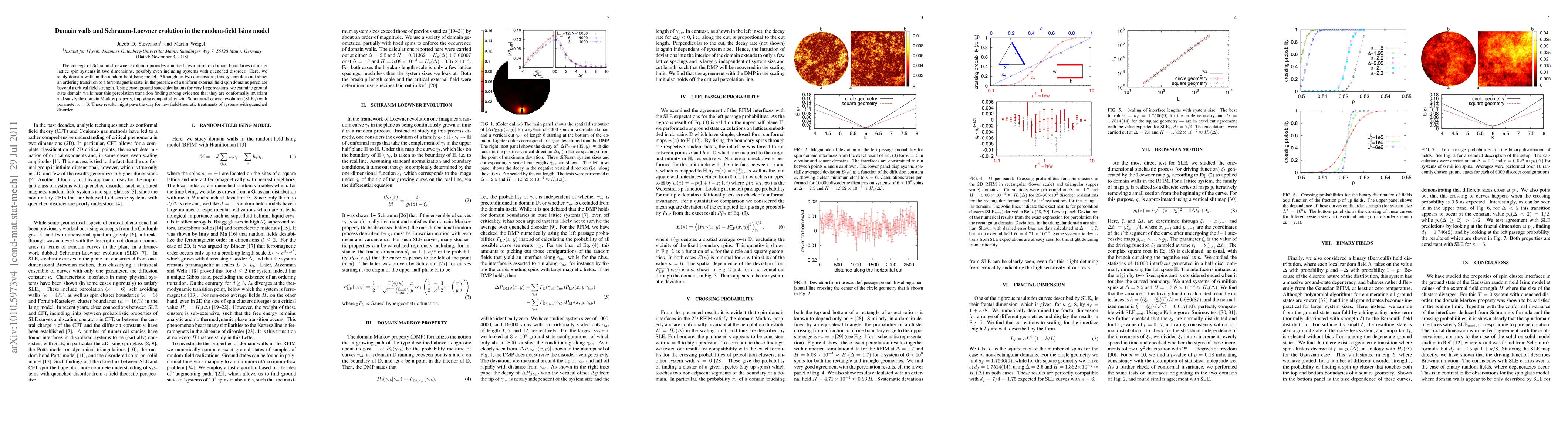 This paper investigates domain walls in the random-field Ising model, showing that they exhibit conformal invariance and the domain Markov property, consistent with Schramm-Loewner evolution (SLE$_{\kappa}$ with $\kappa = 6$) near the percolation transition, potentially enabling new field-theoretic approaches for disordered systems.