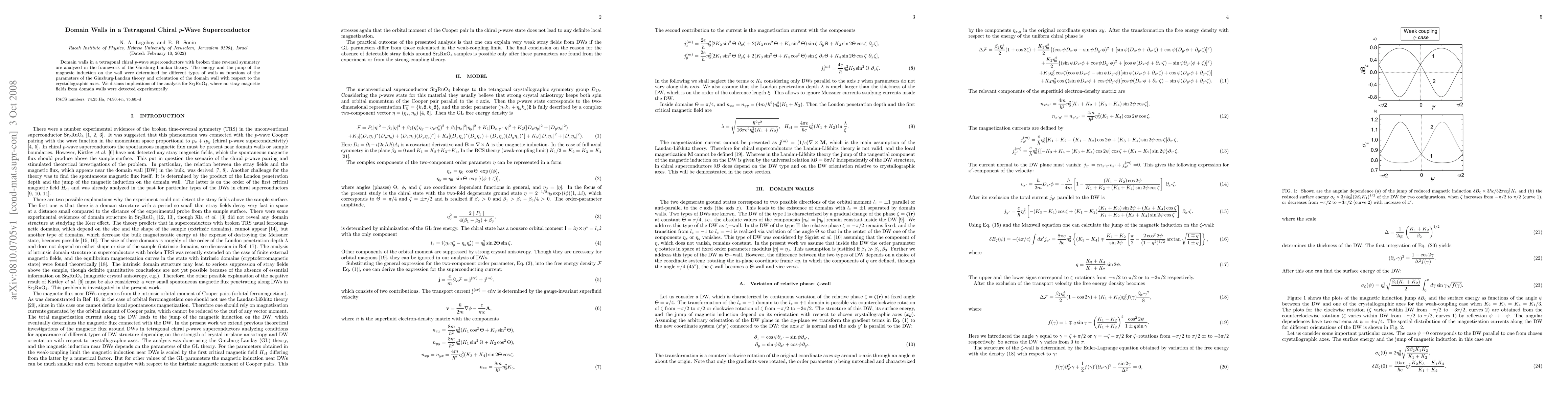 This paper analyzes domain walls in tetragonal chiral p-wave superconductors using Ginsburg-Landau theory, determining their energy and magnetic induction jumps. The study discusses implications for $Sr_{2}RuO_{4}$, noting the absence of stray magnetic fields from domain walls in experiments.