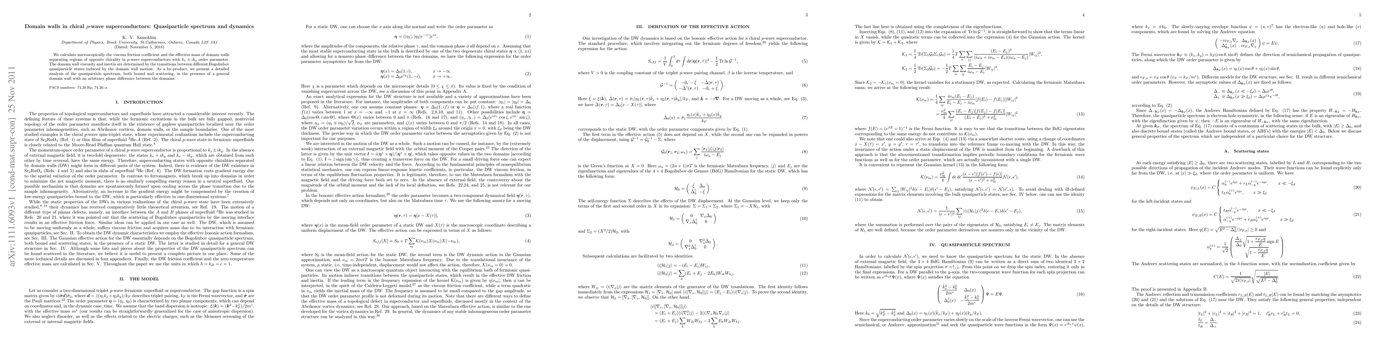 This paper calculates the viscous friction coefficient and effective mass of domain walls in chiral p-wave superconductors, focusing on the quasiparticle spectrum and dynamics. It analyzes the transitions between different Bogoliubov quasiparticle states induced by domain wall motion, providing a detailed spectrum analysis for both bound and scattering quasiparticles.