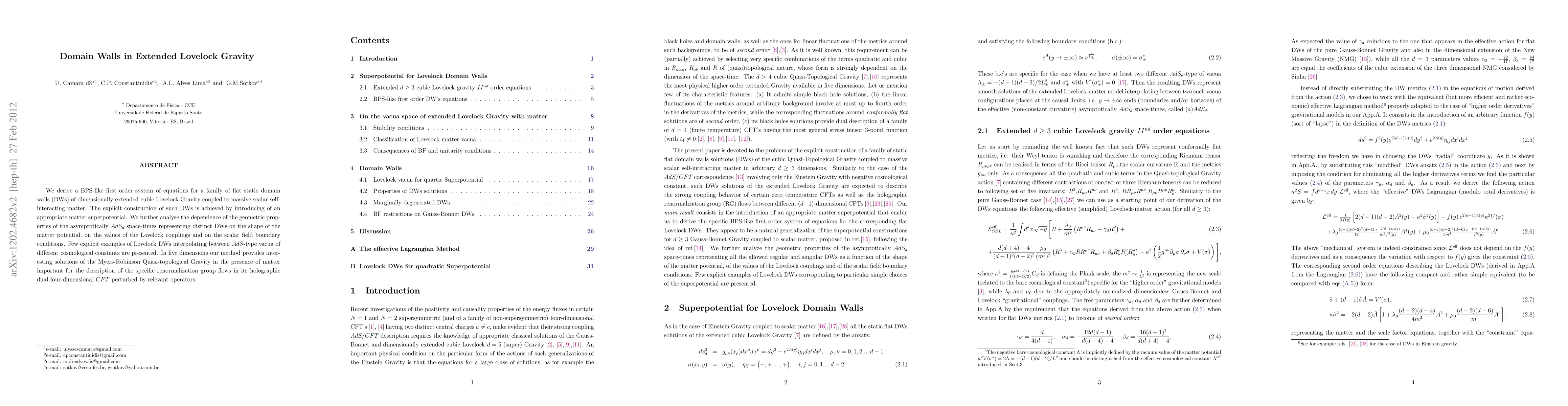 This paper derives a BPS-like first-order system for static domain walls in extended cubic Lovelock Gravity, coupled to massive scalar matter, and constructs explicit examples. It analyzes the geometric properties of these domain walls in asymptotically AdS space-times, influenced by the matter potential, Lovelock couplings, and scalar field boundary conditions.
