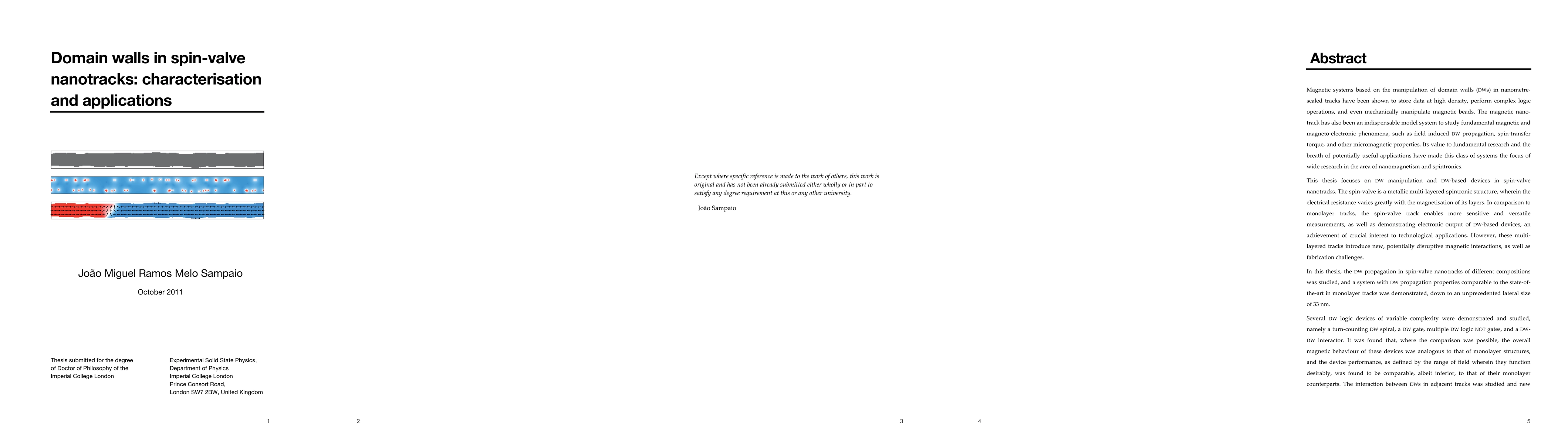 Magnetic systems based on the manipulation of domain walls (DWs) in nano-tracks have been shown to store data at high density, perform complex logic operations, and mechanically manipulate magnetic beads. The magnetic track has been a model system to study magnetic and magneto-electronic phenomena, such as field induced DW propagation and spin-transfer torque. This thesis focuses on DW manipulation and DW-based devices in spin-valve (SV) tracks. In comparison to monolayer tracks, the SV track enables more sensitive and versatile measurements, as well as an electronic output of DW-based devices, of crucial interest to applications. However, these multi-layered tracks add new, potentially disruptive magnetic interactions, as well as fabrication challenges. In this thesis, the DW propagation in SV tracks of different compositions was studied, and a system with DW propagation properties comparable to the state-of-the-art in monolayer tracks was demonstrated, down to an unprecedented lateral size of 33nm. Several logic devices were demonstrated and studied, namely a turn-counting DW spiral, a DW gate, DW logic NOT gates, and a DW-DW interactor. It was found that the magnetic behaviour of these devices was analogous to that of monolayer structures, and the device performance, as defined by the range of field wherein they function desirably, was found to be comparable to that of monolayer systems. The interaction between DWs in adjacent tracks was studied and new phenomena were characterised, such as DW depinning induced by a static or travelling adjacent DW. The contribution of different mechanisms to electrical current induced depinning were quantified, and it was found that the Oersted field, negligible in monolayer tracks, was responsible for large variations in depinning field in SV tracks, and that the strength of spin-transfer effect was similar to that reported in monolayer tracks.