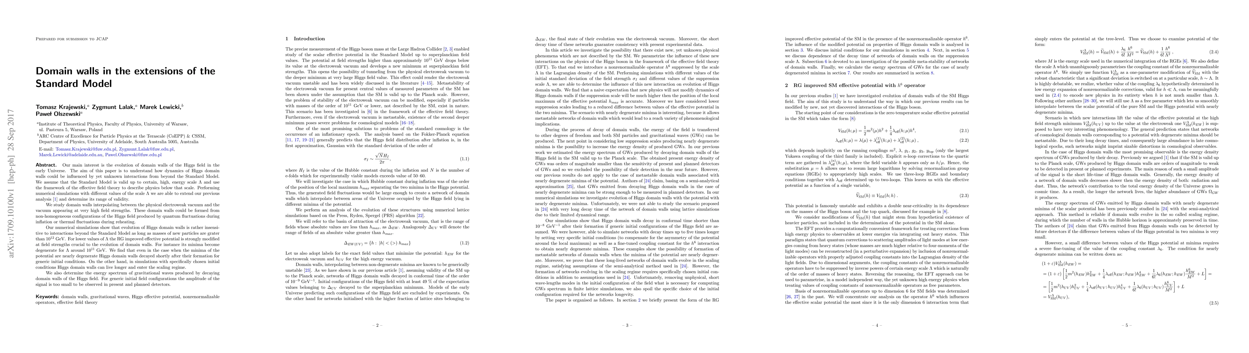 Our main interest is the evolution of domain walls of the Higgs field in the early Universe. The aim of this paper is to understand how dynamics of Higgs domain walls could be influenced by yet unknown interactions from beyond the Standard Model. We assume that the Standard Model is valid up to certain, high, energy scale $\Lambda$ and use the framework of the effective field theory to describe physics below that scale. Performing numerical simulations with different values of the scale $\Lambda$ we are able to extend our previous analysis and determine its range of validity. We study domain walls interpolating between the physical electroweak vacuum and the vacuum appearing at very high field strengths. These domain walls could be formed from non-homogeneous configurations of the Higgs field produced by quantum fluctuations during inflation or thermal fluctuations during reheating. Our numerical simulations show that evolution of Higgs domain walls is rather insensitive to interactions beyond the Standard Model as long as masses of new particles are grater than $10^{12}\ \textrm{GeV}$. For lower values of $\Lambda$ the RG improved effective potential is strongly modified at field strengths crucial to the evolution of domain walls. For instance its minima become degenerate for $\Lambda$ around $10^{11}\ \textrm{GeV}$. We find that even in the case when the minima of the potential are nearly degenerate Higgs domain walls decayed shortly after their formation for generic initial conditions. On the other hand, in simulations with specifically chosen initial conditions Higgs domain walls can live longer and enter the scaling regime. We also determine the energy spectrum of gravitational waves produced by decaying domain walls of the Higgs field. For generic initial field configurations the amplitude of the signal is too small to be observed in present and planned detectors.