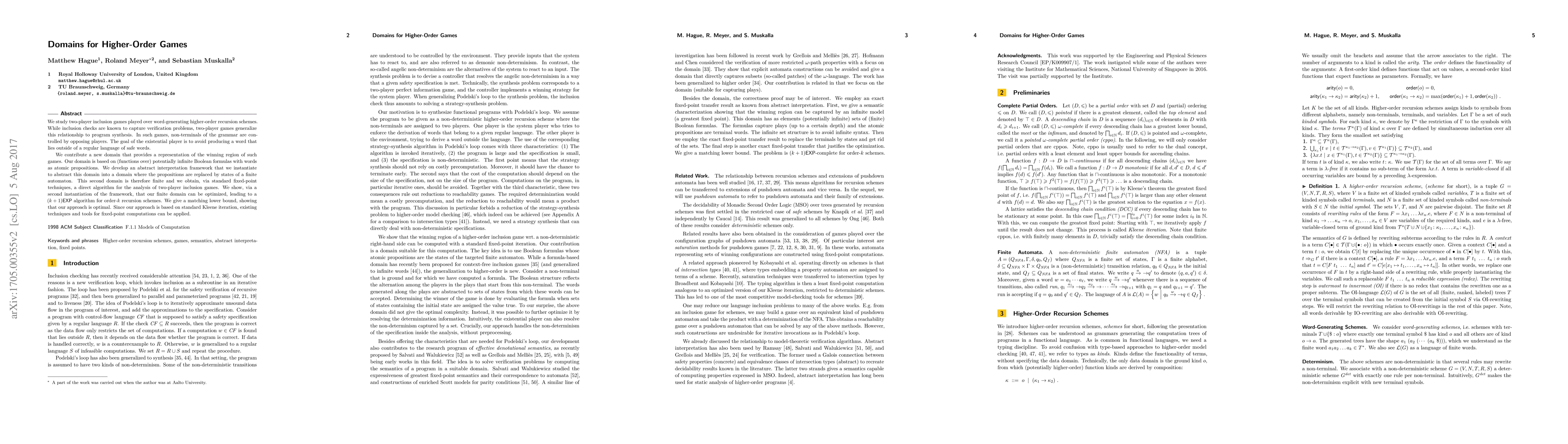 Researchers developed a new domain for analyzing two-player inclusion games played over higher-order recursion schemes, enabling a direct algorithm for program synthesis and achieving a (k+1)EXP time complexity.