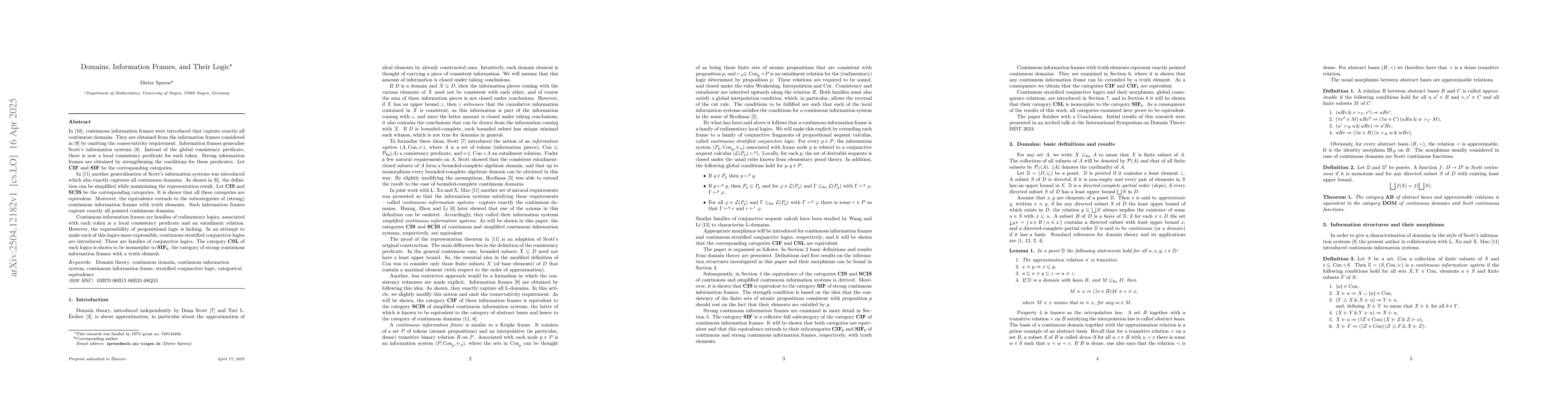 This research paper explores categories of information frames that capture continuous domains, comparing their equivalences and connections to logics and conjunctive logic systems.