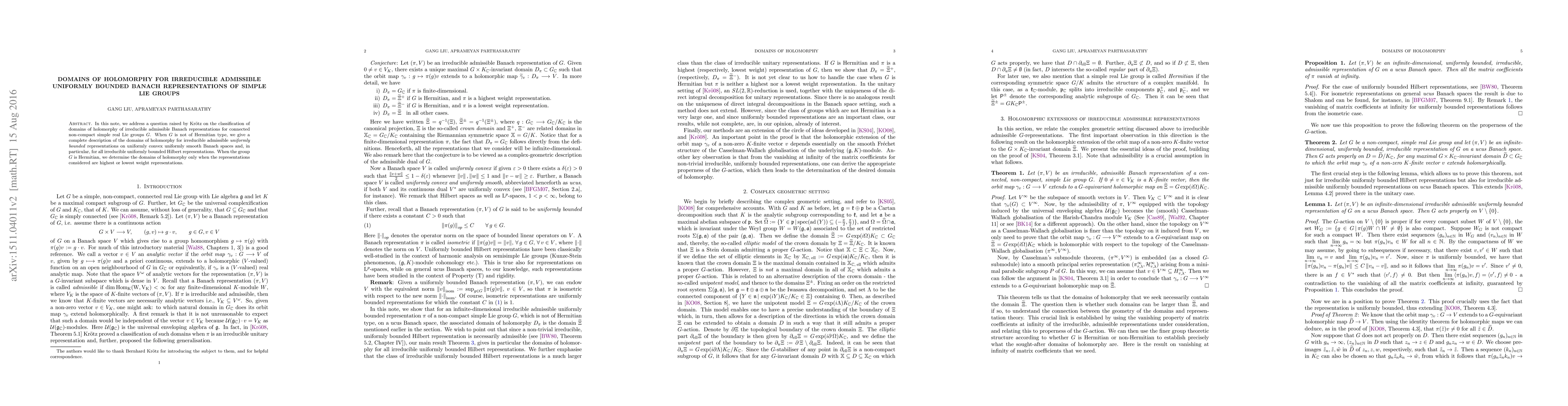 This paper classifies domains of holomorphy for irreducible admissible uniformly bounded representations of non-Hermitian simple Lie groups on Banach spaces. For Hermitian groups, it determines these domains specifically for highest or lowest weight representations.