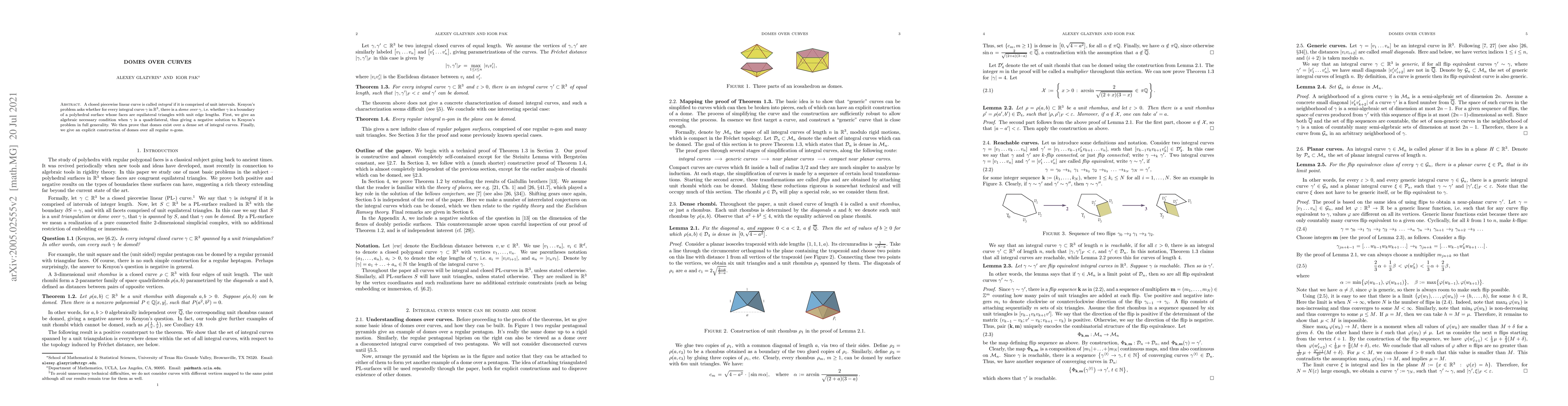 A closed piecewise linear curve is called integral if it is comprised of unit intervals. Kenyon's problem asks whether for every integral curve $\gamma$ in $\mathbb{R}^3$, there is a dome over $\gamma$, i.e. whether $\gamma$ is a boundary of a polyhedral surface whose faces are equilateral triangles with unit edge lengths. First, we give an algebraic necessary condition when $\gamma$ is a quadrilateral, thus giving a negative solution to Kenyon's problem in full generality. We then prove that domes exist over a dense set of integral curves. Finally, we give an explicit construction of domes over all regular $n$-gons.