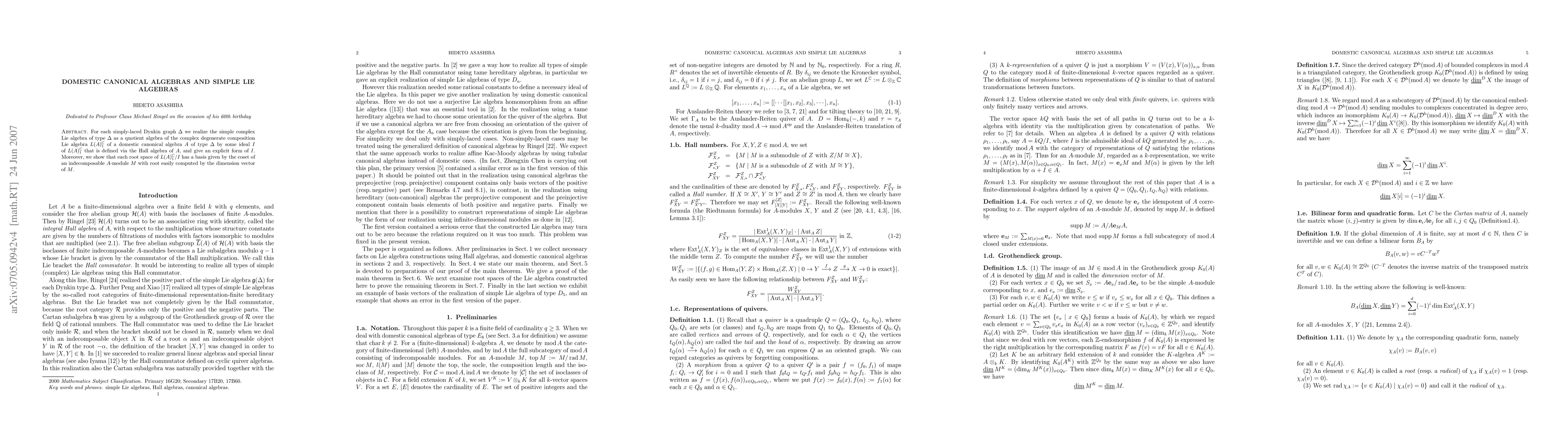 For each simply-laced Dynkin graph $\Delta$ we realize the simple complex Lie algebra of type $\Delta$ as a quotient algebra of the complex degenerate composition Lie algebra $L(A)_{1}^{\mathbb{C}}$ of a domestic canonical algebra $A$ of type $\Delta$ by some ideal $I$ of $L(A)_{1}^{\mathbb{C}}$ that is defined via the Hall algebra of $A$, and give an explicit form of $I$. Moreover, we show that each root space of $L(A)_{1}^{\mathbb{C}}/I$ has a basis given by the coset of an indecomposable $A$-module $M$ with root easily computed by the dimension vector of $M$.