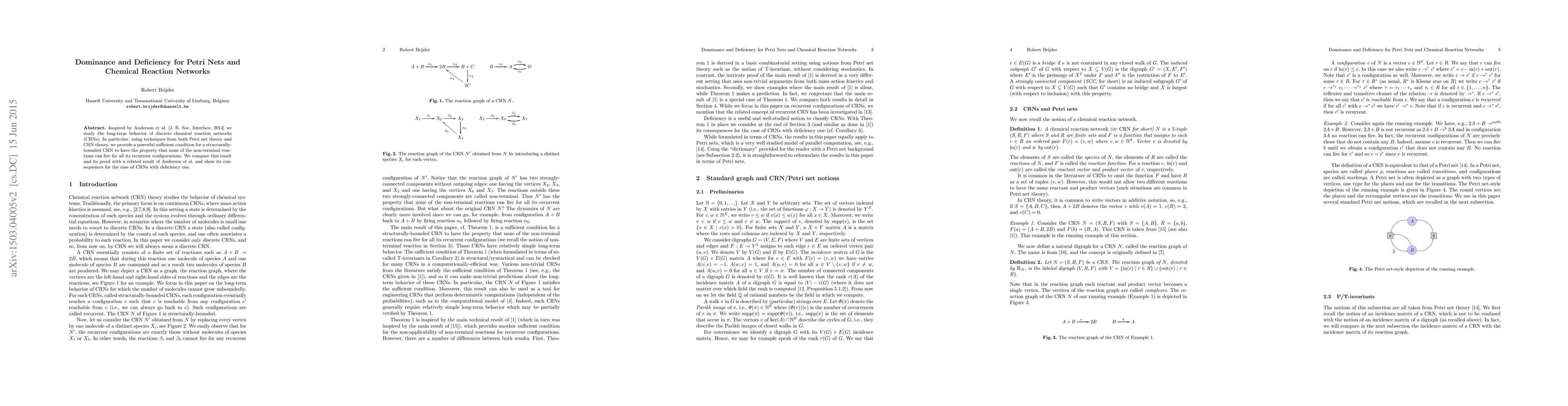 Inspired by Anderson et al. [J. R. Soc. Interface, 2014] we study the long-term behavior of discrete chemical reaction networks (CRNs). In particular, using techniques from both Petri net theory and CRN theory, we provide a powerful sufficient condition for a structurally-bounded CRN to have the property that none of the non-terminal reactions can fire for all its recurrent configurations. We compare this result and its proof with a related result of Anderson et al. and show its consequences for the case of CRNs with deficiency one.