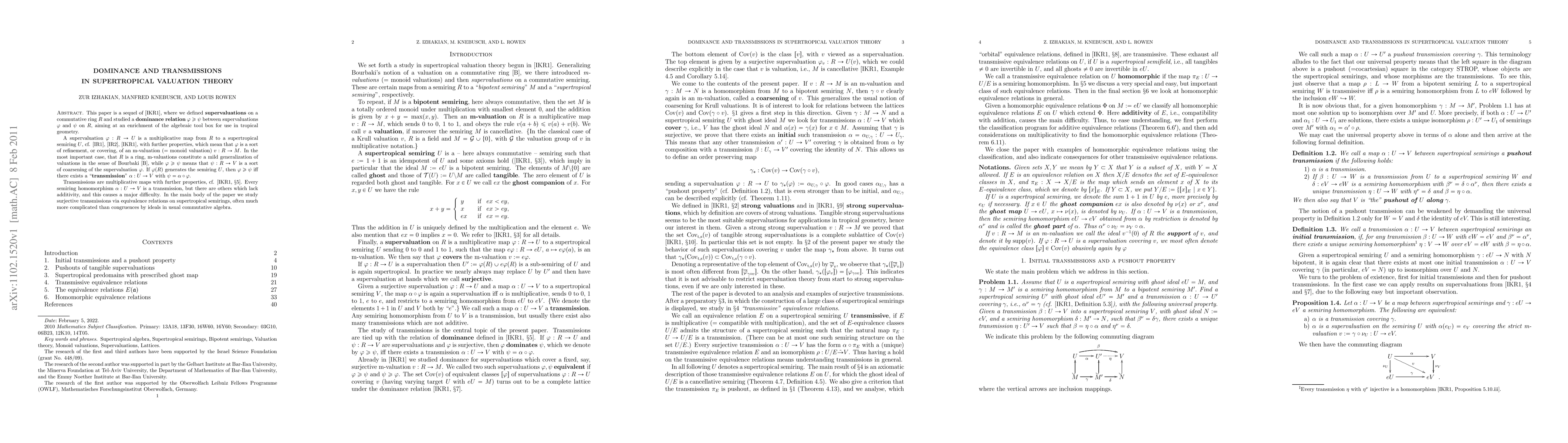 This paper studies dominance relations between supervaluations on a commutative ring, exploring how these relations lead to transmissions that enrich the algebraic tool box for tropical geometry.