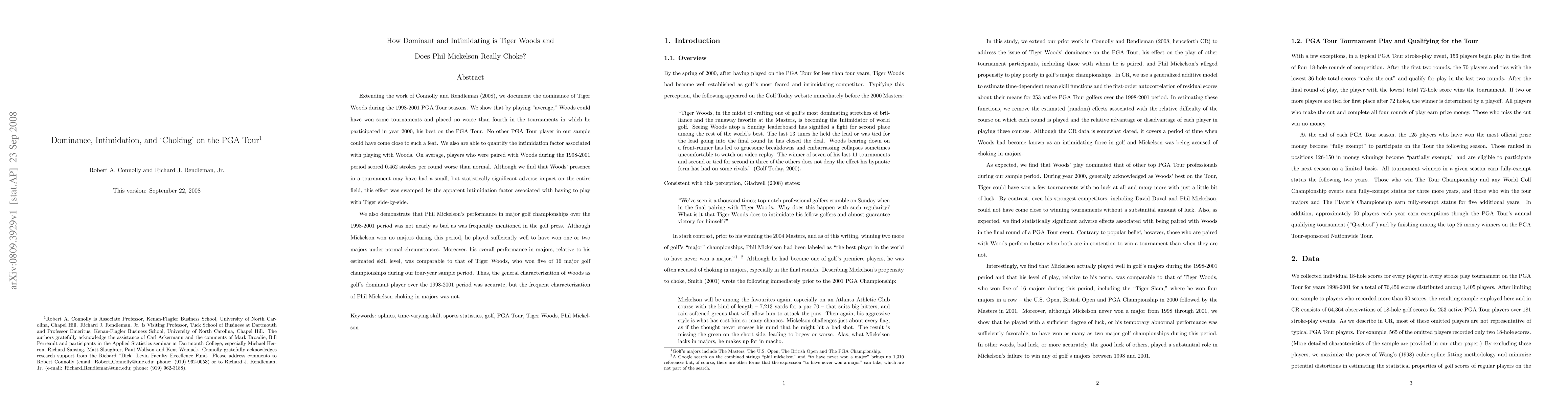 This study confirms Tiger Woods' dominance on the PGA Tour from 1998-2001, but also finds that he intimidated opponents more than his golfing ability did, and challenges the notion that Phil Mickelson was a choke artist in majors during this period.