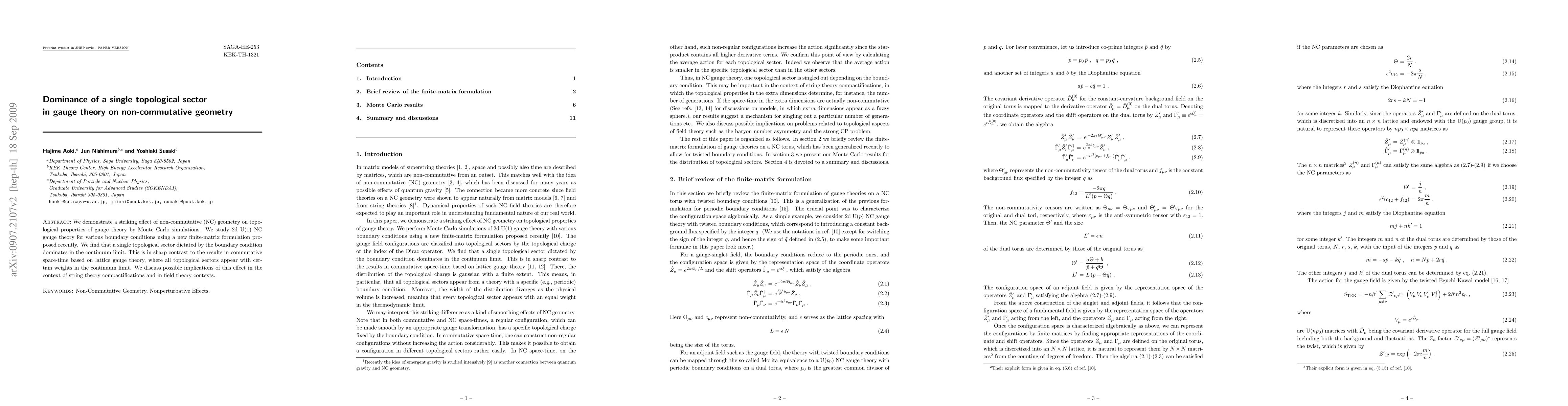 This paper demonstrates through Monte Carlo simulations that a single topological sector dominates in 2d U(1) non-commutative gauge theory, contrasting with commutative gauge theory's distribution of topological sectors. The findings suggest significant implications for string theory compactifications and field theory.