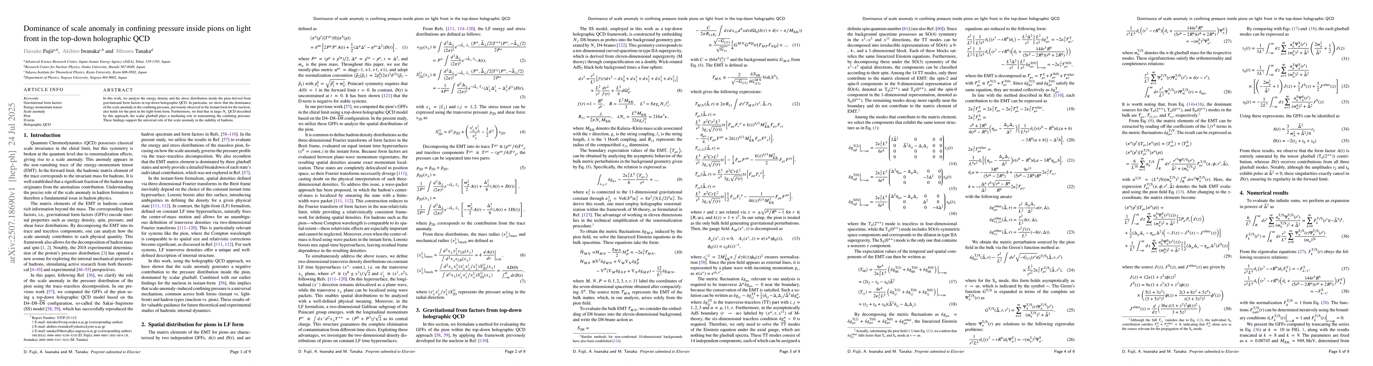 The work extends previous findings on confining pressure in nucleons to pions, demonstrating the universality of scale anomaly effects across different hadron types and dynamical forms.