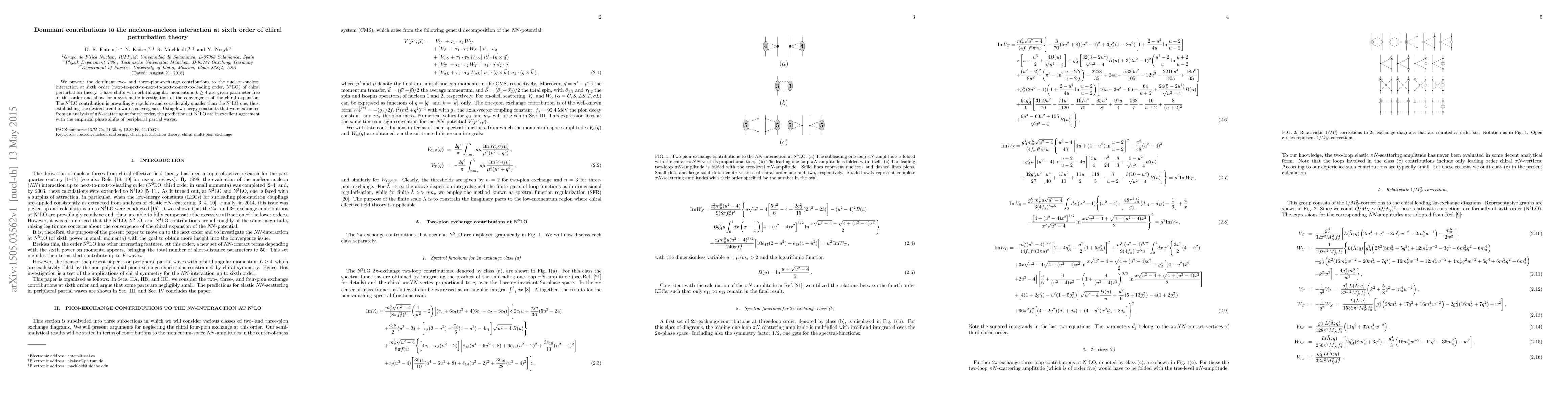 This paper investigates the nucleon-nucleon interaction at sixth order (N5LO) in chiral perturbation theory, focusing on two- and three-pion-exchange contributions. The results show a predominantly repulsive N5LO interaction, which is smaller than the previous N4LO order, indicating a convergence trend. The findings align well with empirical phase shifts for peripheral partial waves.