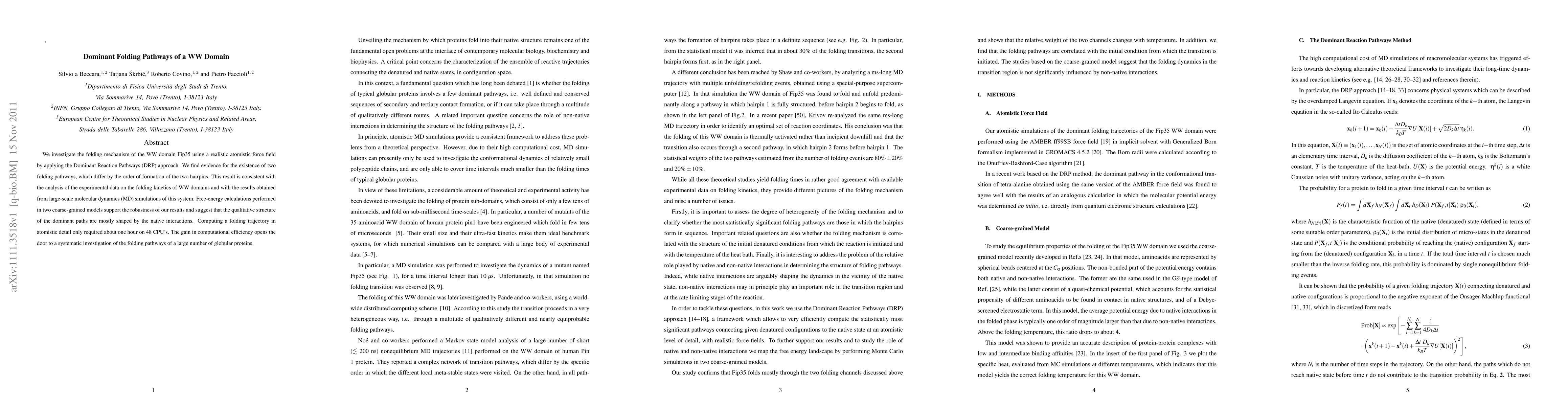 This study uses the Dominant Reaction Pathways approach to explore the folding mechanism of the WW domain Fip35, identifying two distinct folding pathways based on the order of hairpin formation. The findings align with experimental data and large-scale molecular dynamics simulations, suggesting that native interactions predominantly shape the folding pathways.