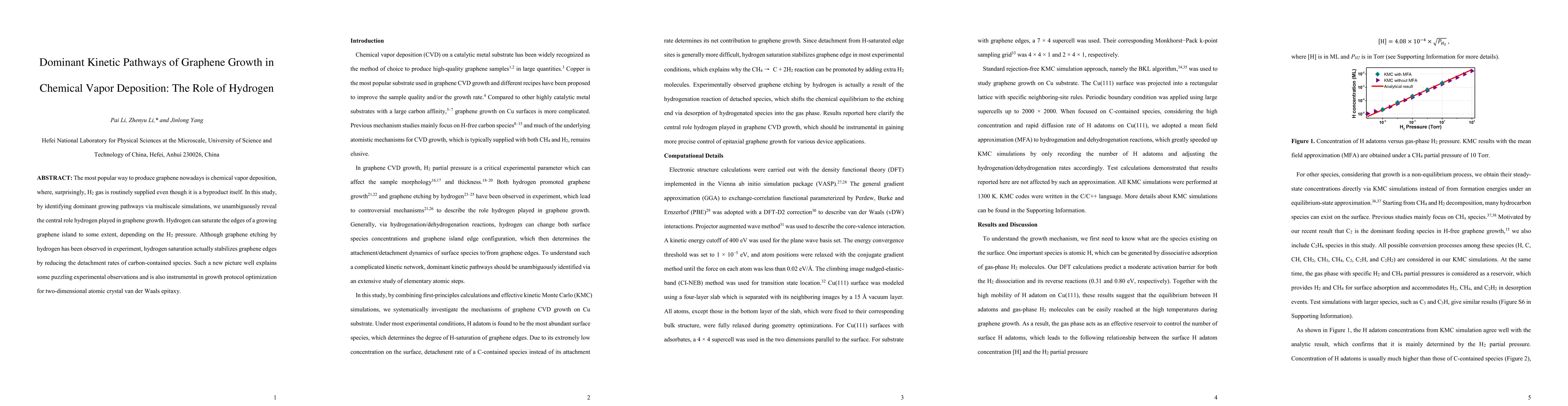 The most popular way to produce graphene nowadays is chemical vapor deposition, where, surprisingly, H$_2$ gas is routinely supplied even though it is a byproduct itself. In this study, by identifying dominant growing pathways via multiscale simulations, we unambiguously reveal the central role hydrogen played in graphene growth. Hydrogen can saturate the edges of a growing graphene island to some extent, depending on the H$_2$ pressure. Although graphene etching by hydrogen has been observed in experiment, hydrogen saturation actually stabilizes graphene edges by reducing the detachment rates of carbon-contained species. Such a new picture well explains some puzzling experimental observations and is also instrumental in growth protocol optimization for two-dimensional atomic crystal van der Waals epitaxy.