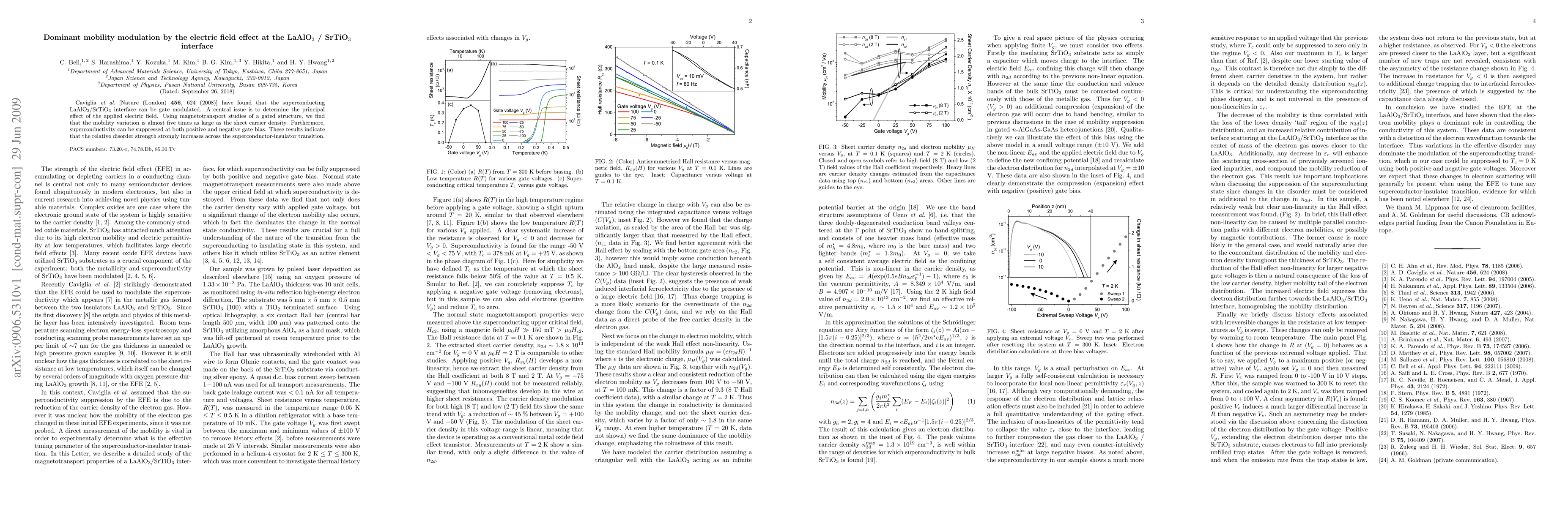 Caviglia et al. demonstrate that the LaAlO_3/SrTiO_3 interface's superconducting properties can be modulated by an electric field, with mobility changes significantly exceeding carrier density variations. The study reveals that superconductivity can be suppressed by both positive and negative gate bias, indicating a strong increase in relative disorder strength near the superconductor-insulator transition.