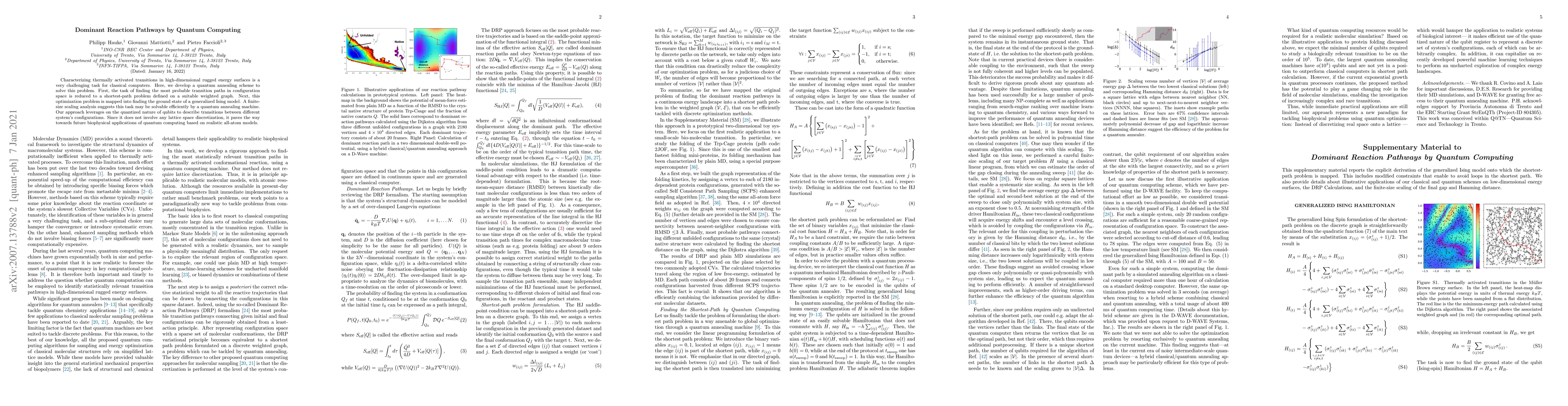 Characterizing thermally activated transitions in high-dimensional rugged energy surfaces is a very challenging task for classical computers. Here, we develop a quantum annealing scheme to solve this problem. First, the task of finding the most probable transition paths in configuration space is reduced to a shortest-path problem defined on a suitable weighted graph. Next, this optimization problem is mapped into finding the ground state of a generalized Ising model. A finite-size scaling analysis suggests this task may be solvable efficiently by a quantum annealing machine. Our approach leverages on the quantized nature of qubits to describe transitions between different system's configurations. Since it does not involve any lattice space discretization, it paves the way towards future biophysical applications of quantum computing based on realistic all-atom models.