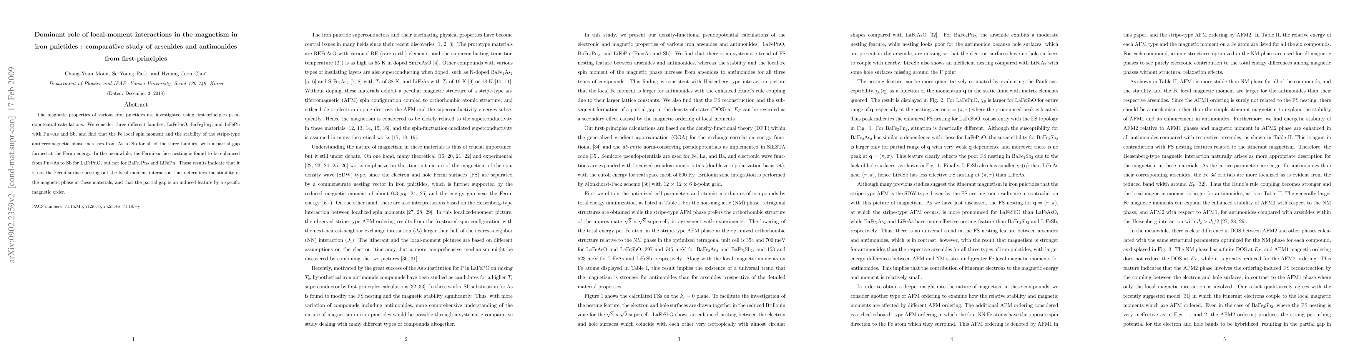 The magnetic properties of various iron pnictides are investigated using first-principles pseudopotential calculations. We consider three different families, LaFePnO, BaFe$_2$Pn$_2$, and LiFePn with Pn=As and Sb, and find that the Fe local spin moment and the stability of the stripe-type antiferromagnetic phase increases from As to Sb for all of the three families, with a partial gap formed at the Fermi energy. In the meanwhile, the Fermi-surface nesting is found to be enhanced from Pn=As to Sb for LaFePnO, but not for BaFe$_2$Pn$_2$ and LiFePn. These results indicate that it is not the Fermi surface nesting but the local moment interaction that determines the stability of the magnetic phase in these materials, and that the partial gap is an induced feature by a specific magnetic order.