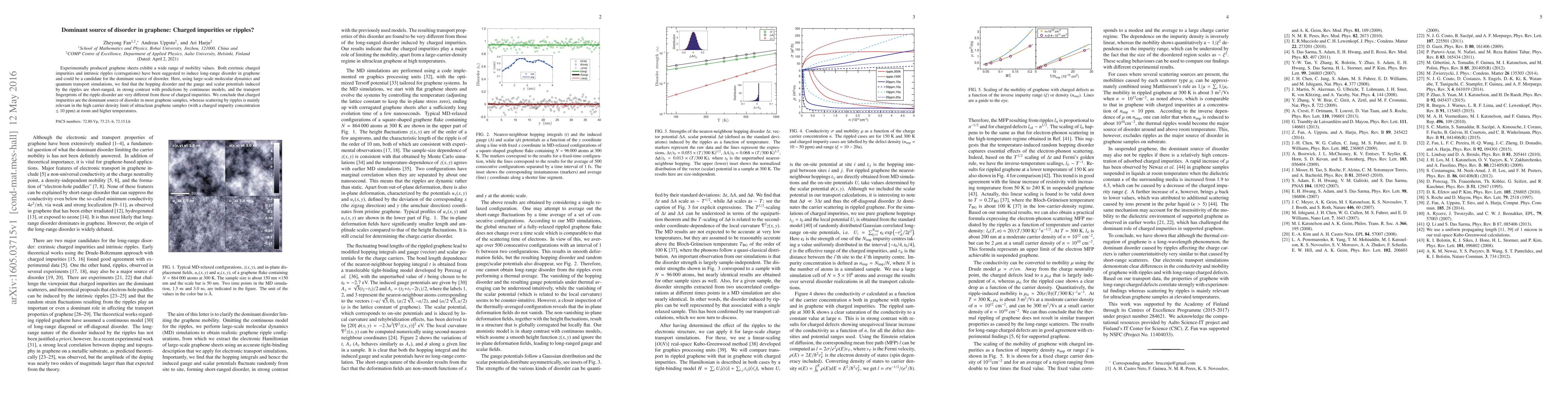 This study uses molecular dynamics and quantum transport simulations to determine that charged impurities, rather than graphene ripples, are the primary source of disorder in most graphene samples, with ripples primarily affecting transport in ultraclean samples at high carrier densities and elevated temperatures.