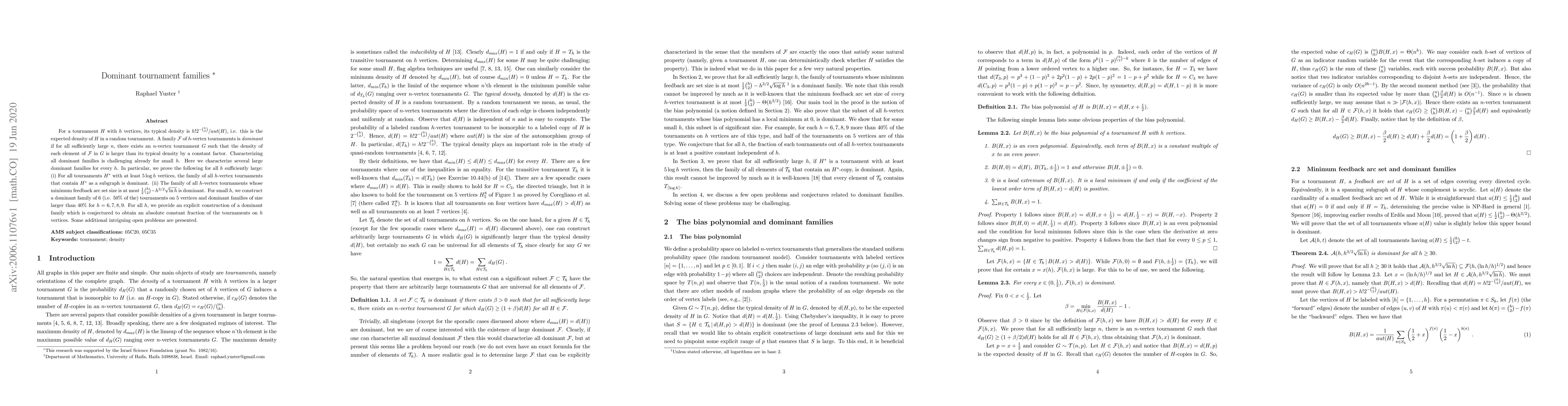 For a tournament $H$ with $h$ vertices, its typical density is $h!2^{-\binom{h}{2}}/aut(H)$, i.e. this is the expected density of $H$ in a random tournament. A family ${\mathcal F}$ of $h$-vertex tournaments is {\em dominant} if for all sufficiently large $n$, there exists an $n$-vertex tournament $G$ such that the density of each element of ${\mathcal F}$ in $G$ is larger than its typical density by a constant factor. Characterizing all dominant families is challenging already for small $h$. Here we characterize several large dominant families for every $h$. In particular, we prove the following for all $h$ sufficiently large: (i) For all tournaments $H^*$ with at least $5\log h$ vertices, the family of all $h$-vertex tournaments that contain $H^*$ as a subgraph is dominant. (ii) The family of all $h$-vertex tournaments whose minimum feedback arc set size is at most $\frac{1}{2}\binom{h}{2}-h^{3/2}\sqrt{\ln h}$ is dominant. For small $h$, we construct a dominant family of $6$ (i.e. $50\%$ of the) tournaments on $5$ vertices and dominant families of size larger than $40\%$ for $h=6,7,8,9$. For all $h$, we provide an explicit construction of a dominant family which is conjectured to obtain an absolute constant fraction of the tournaments on $h$ vertices. Some additional intriguing open problems are presented.