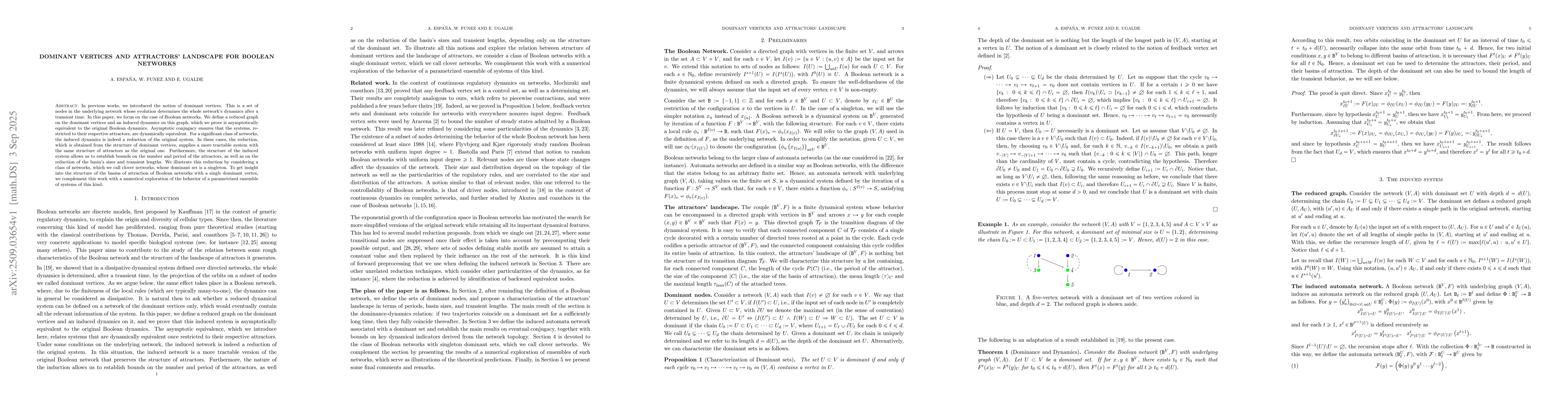 In previous works, we introduced the notion of dominant vertices. This is a set of nodes in the underlying network whose evolution determines the whole network's dynamics after a transient time. In this paper, we focus on the case of Boolean networks. We define a reduced graph on the dominant vertices and an induced dynamics on this graph, which we prove is asymptotically equivalent to the original Boolean dynamics. Asymptotic conjugacy ensures that the systems, restricted to their respective attractors, are dynamically equivalent. For a significant class of networks, the induced dynamics is indeed a reduction of the original system. In these cases, the reduction, which is obtained from the structure of dominant vertices, supplies a more tractable system with the same structure of attractors as the original one. Furthermore, the structure of the induced system allows us to establish bounds on the number and period of the attractors, as well as on the reduction of the basin's sizes and transient lengths. We illustrate this reduction by considering a class of networks, which we call clover networks, whose dominant set is a singleton. To get insight into the structure of the basins of attraction of Boolean networks with a single dominant vertex, we complement this work with a numerical exploration of the behavior of a parametrized ensemble of systems of this kind.