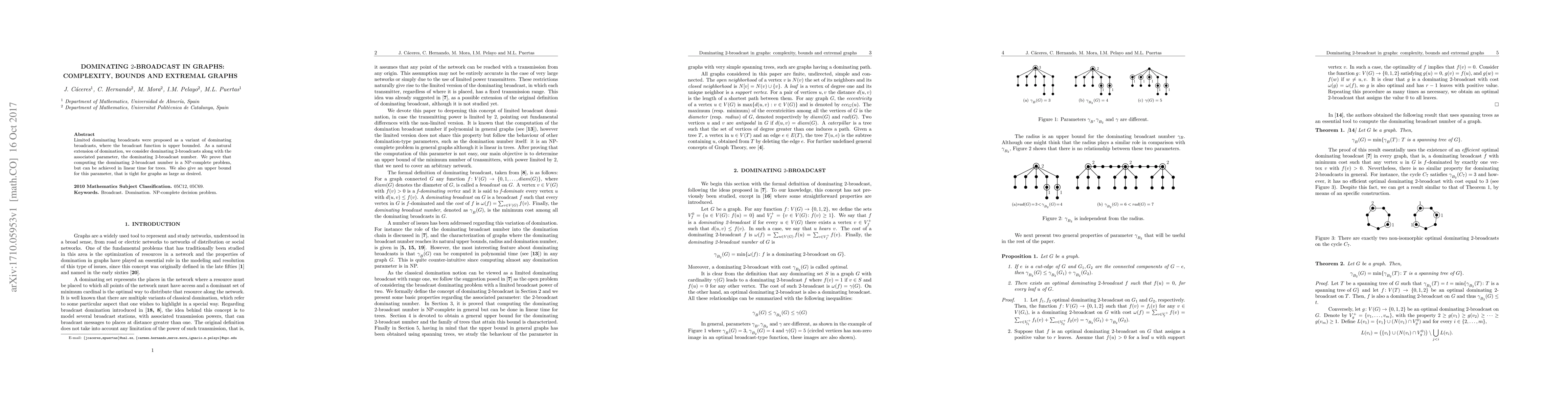 Limited dominating broadcasts were proposed as a variant of dominating broadcasts, where the broadcast function is upper bounded. As a natural extension of domination, we consider dominating $2$-broadcasts along with the associated parameter, the dominating $2$-broadcast number. We prove that computing the dominating $2$-broadcast number is a NP-complete problem, but can be achieved in linear time for trees. We also give an upper bound for this parameter, that is tight for graphs as large as desired.