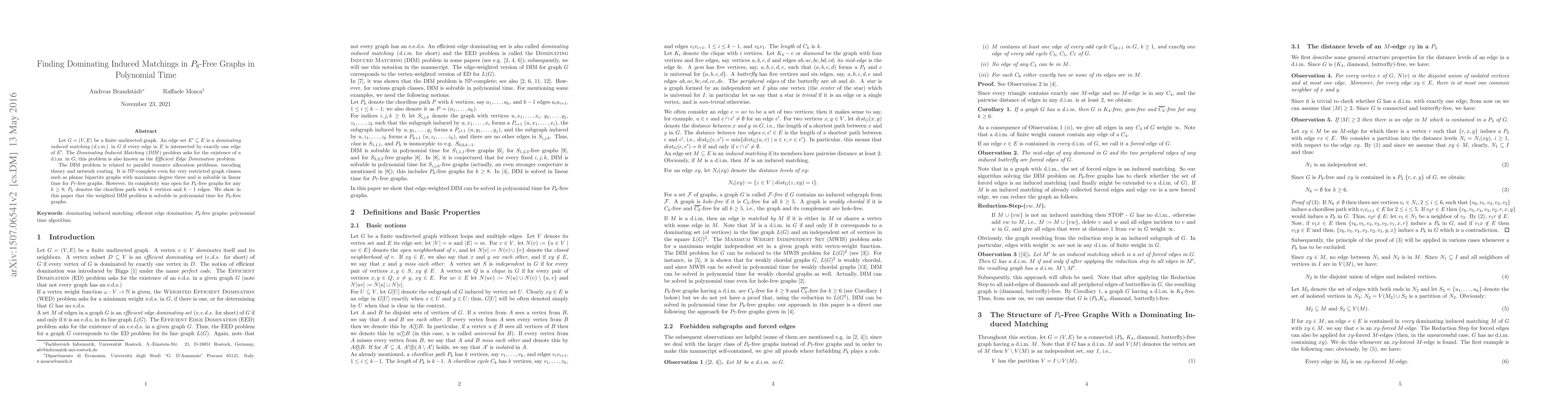 This paper addresses the Dominating Induced Matching (DIM) problem, which seeks to find a set of edges that intersects all edges of a graph exactly once, proving it is solvable in polynomial time for $P_8$-free graphs, extending previous linear-time solutions for $P_7$-free graphs.