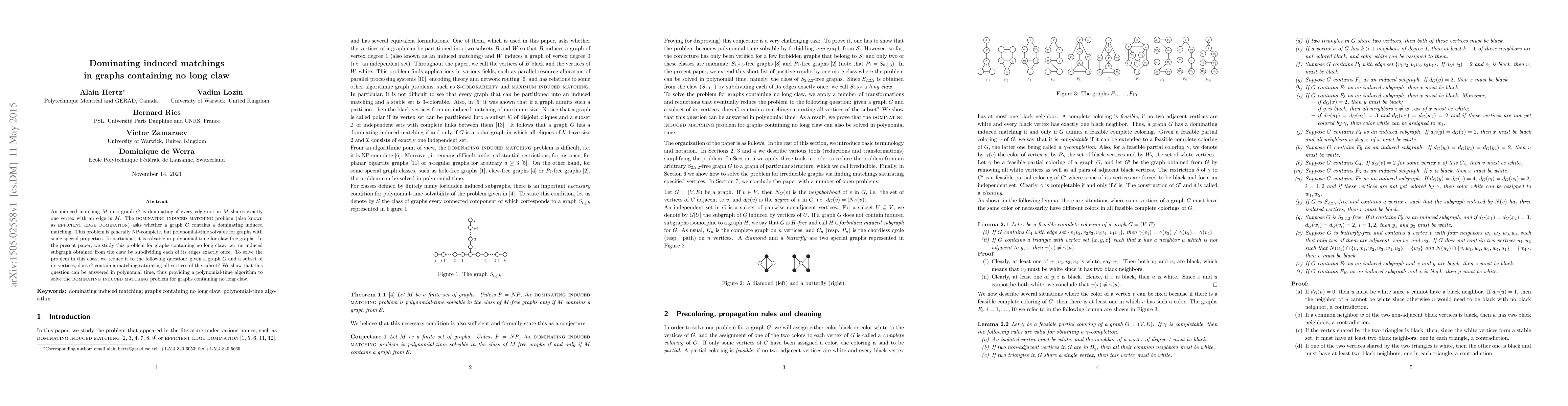 This paper investigates the dominating induced matching problem in graphs that contain no long claw, which are derived from claws by subdividing each edge once. It presents a polynomial-time algorithm by reducing the problem to determining whether a given subset of vertices can be saturated by a matching in the graph.