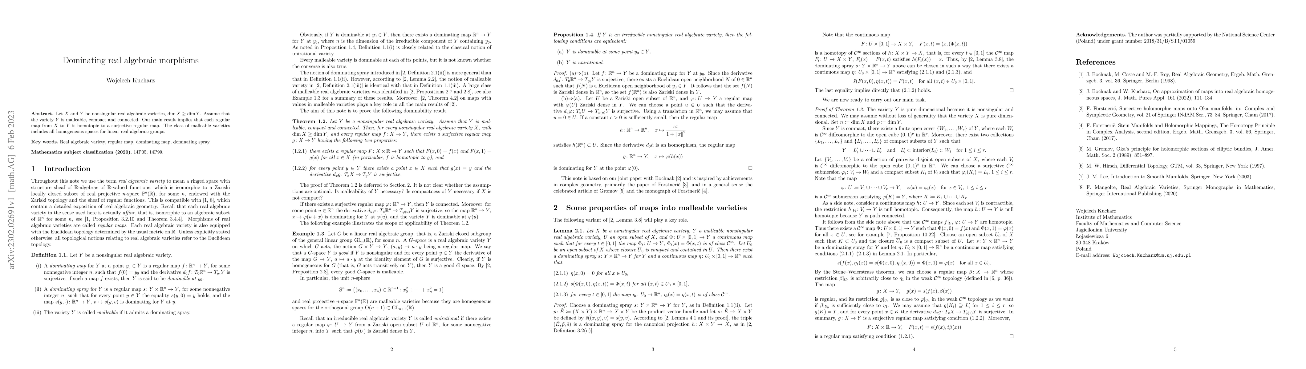 Summary: The paper demonstrates that any regular map from a nonsingular real algebraic variety X to a compact, connected, and malleable variety Y, where dimX > dimY-1, is homotopic to a surjective regular map. This result applies to all homogeneous spaces for linear real algebraic groups.