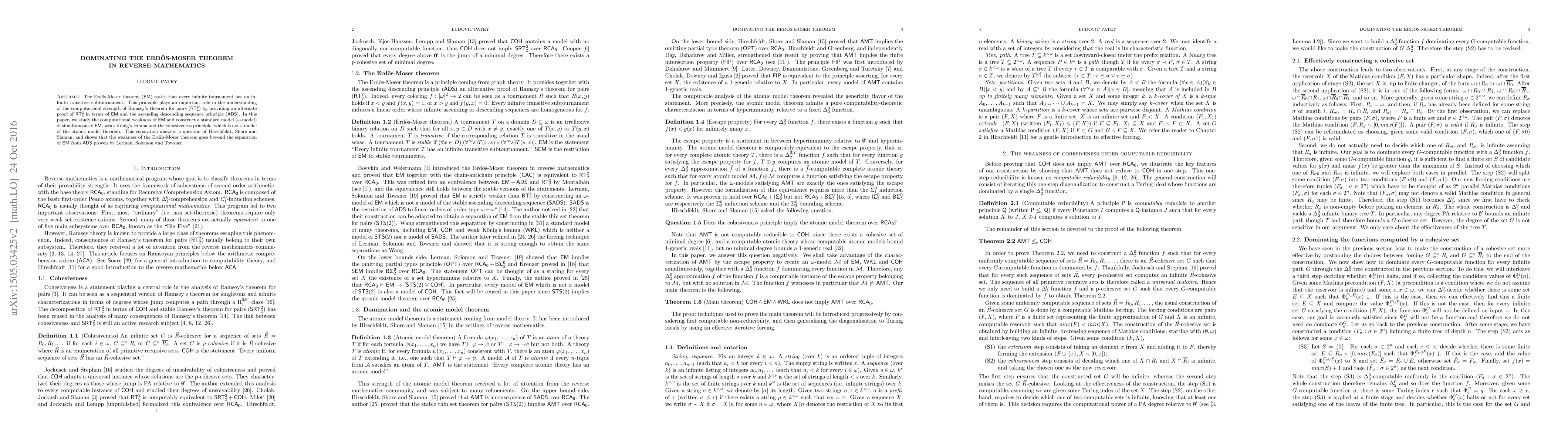 A new study separates the Erdos-Moser theorem from another key principle in reverse mathematics, showing a stronger computational weakness than previously thought. This finding answers a question of Hirschfeldt, Shore, and Slaman about the limitations of the Erdos-Moser theorem.