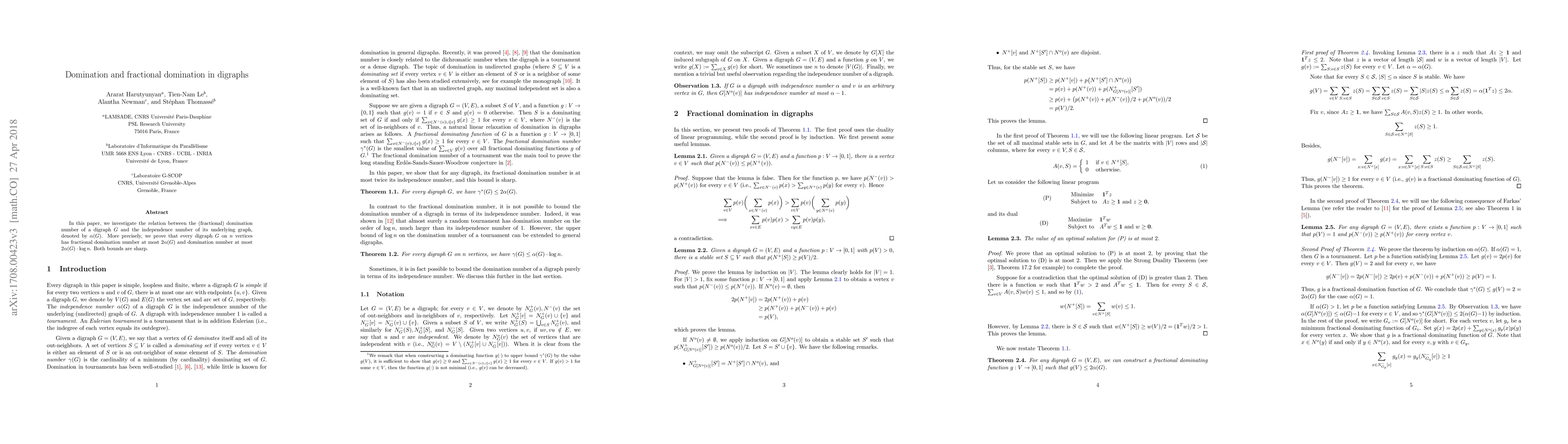 This paper explores the relationship between the fractional domination number of a digraph and its underlying graph's independence number, proving that the fractional domination number is at most $2$ times the independence number, and that for directed triangle-free digraphs, the domination number is at most the independence number squared times its factorial. The first bound is shown to be tight.