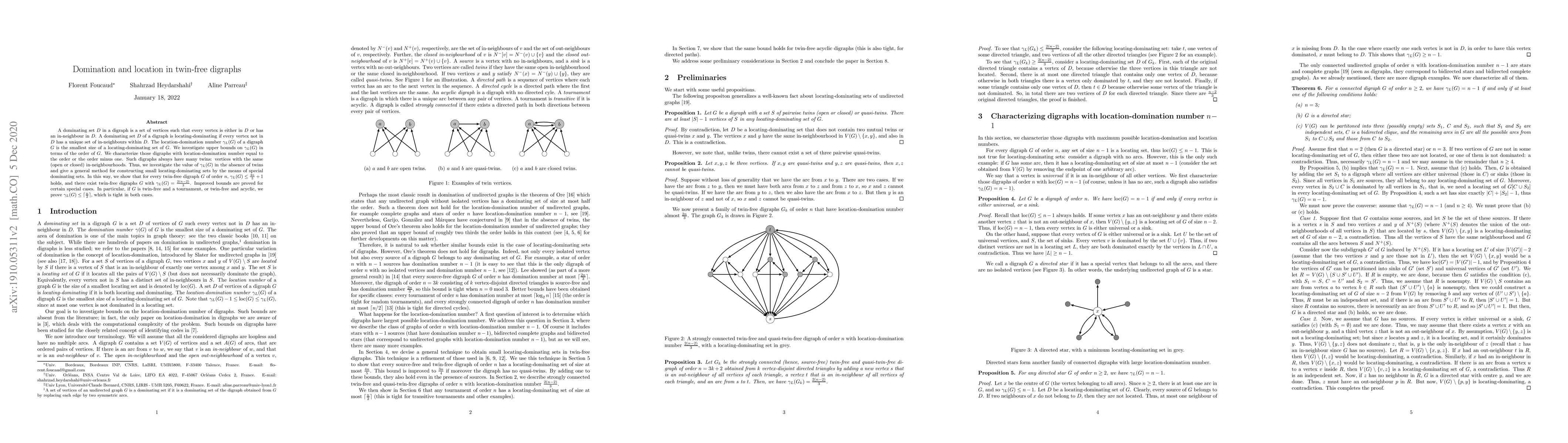 This paper explores the location-domination number $\gamma_L(G)$ in twin-free digraphs, establishing upper bounds on $\gamma_L(G)$ in terms of the graph's order. It shows that for twin-free digraphs, $\gamma_L(G)\leq\frac{4n}{5}$, with tighter bounds for tournaments and acyclic graphs at $\gamma_L(G)\leq\lceil\frac{n}{2}\rceil$.
