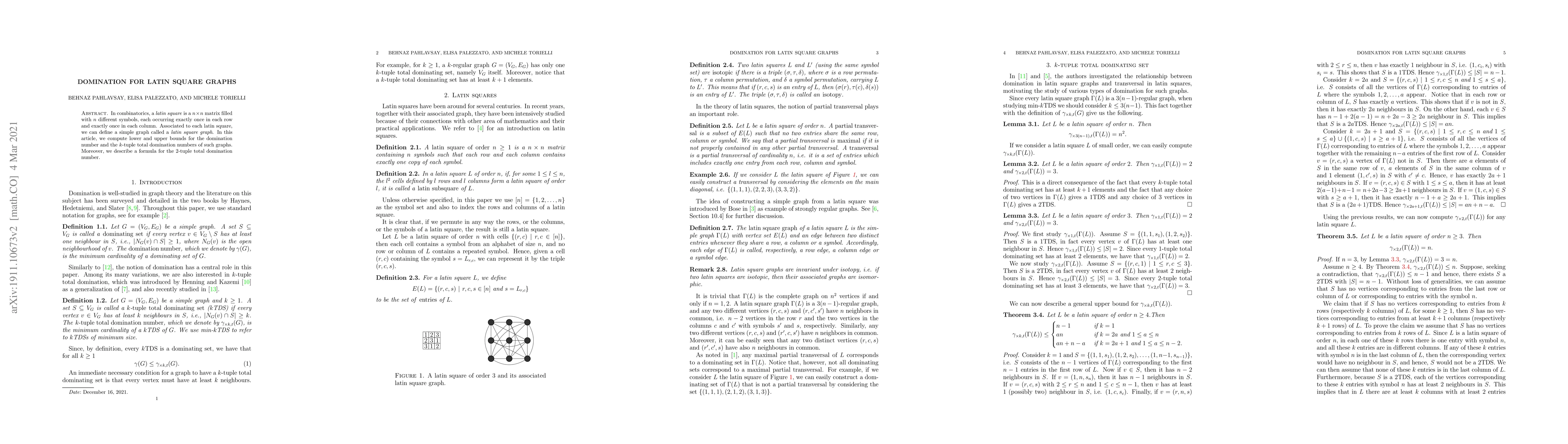 This paper explores the domination properties of latin square graphs, providing lower and upper bounds for the domination number and k-tuple total domination numbers, and presenting a formula for the 2-tuple total domination number.