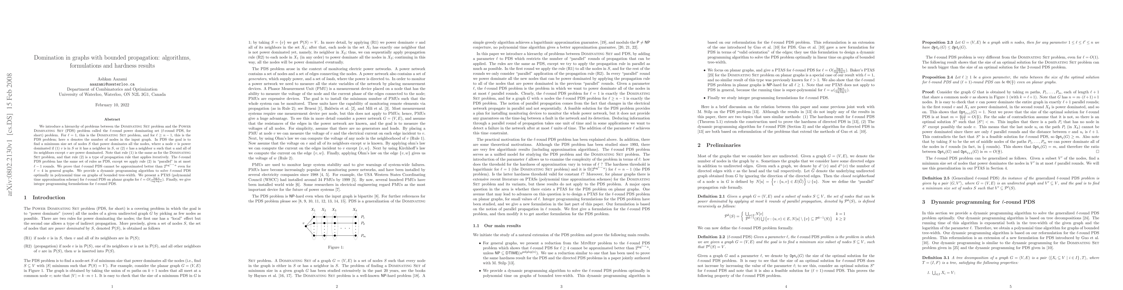 We introduce a hierarchy of problems between the \textsc{Dominating Set} problem and the \textsc{Power Dominating Set} (PDS) problem called the $\ell$-round power dominating set ($\ell$-round PDS, for short) problem. For $\ell=1$, this is the \textsc{Dominating Set} problem, and for $\ell\geq n-1$, this is the PDS problem; here $n$ denotes the number of nodes in the input graph. In PDS the goal is to find a minimum size set of nodes $S$ that power dominates all the nodes, where a node $v$ is power dominated if (1) $v$ is in $S$ or it has a neighbor in $S$, or (2) $v$ has a neighbor $u$ such that $u$ and all of its neighbors except $v$ are power dominated. Note that rule (1) is the same as for the \textsc{Dominating Set} problem, and that rule (2) is a type of propagation rule that applies iteratively. The $\ell$-round PDS problem has the same set of rules as PDS, except we apply rule (2) in ``parallel'' in at most $\ell-1$ rounds. We prove that $\ell$-round PDS cannot be approximated better than $2^{\log^{1-\epsilon}{n}}$ even for $\ell=4$ in general graphs. We provide a dynamic programming algorithm to solve $\ell$-round PDS optimally in polynomial time on graphs of bounded tree-width. We present a PTAS (polynomial time approximation scheme) for $\ell$-round PDS on planar graphs for $\ell=O(\tfrac{\log{n}}{\log{\log{n}}})$. Finally, we give integer programming formulations for $\ell$-round PDS.