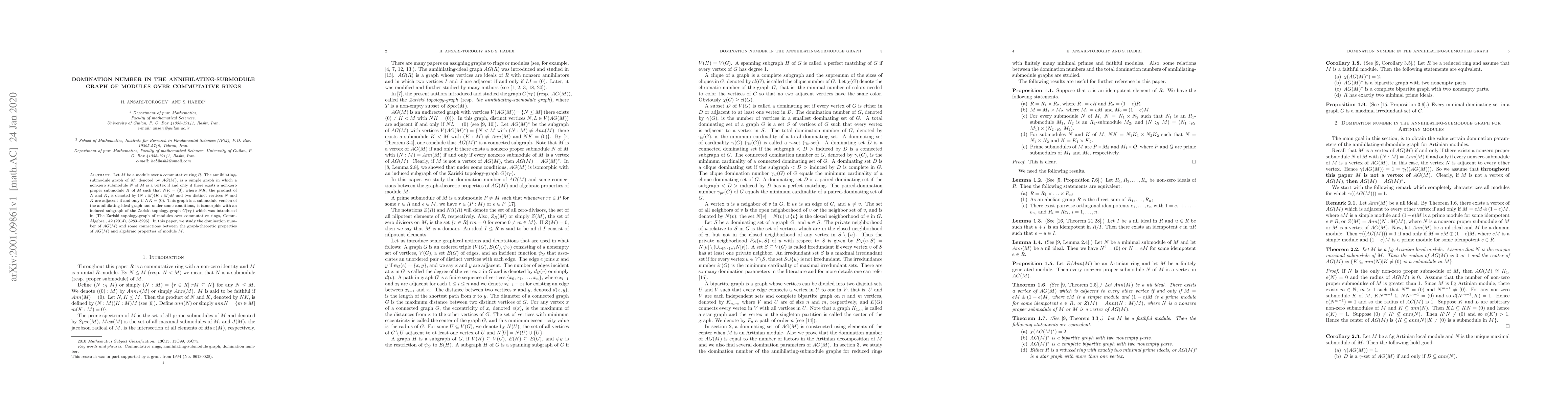 This paper investigates the domination number in the annihilating-submodule graph $AG(M)$ of a module $M$ over a commutative ring $R$, exploring connections between graph-theoretic properties of $AG(M)$ and algebraic properties of $M$. The study also compares $AG(M)$ with the Zariski topology-graph $G(\tau_T)$.