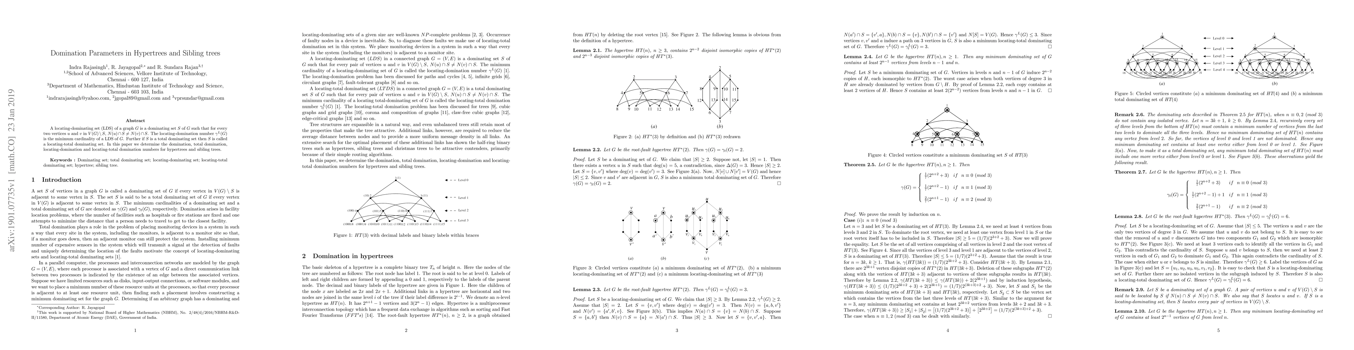A locating-dominating set (LDS) of a graph $G$ is a dominating set $S$ of $G$ such that for every two vertices $u$ and $v$ in $V(G) \setminus S$, $N(u)\cap S \neq N(v)\cap S$. The locating-domination number $\gamma^{L}(G)$ is the minimum cardinality of a LDS of $G$. Further if $S$ is a total dominating set then $S$ is called a locating-total dominating set. In this paper we determine the domination, total domination, locating-domination and locating-total domination numbers for hypertrees and sibling trees.
