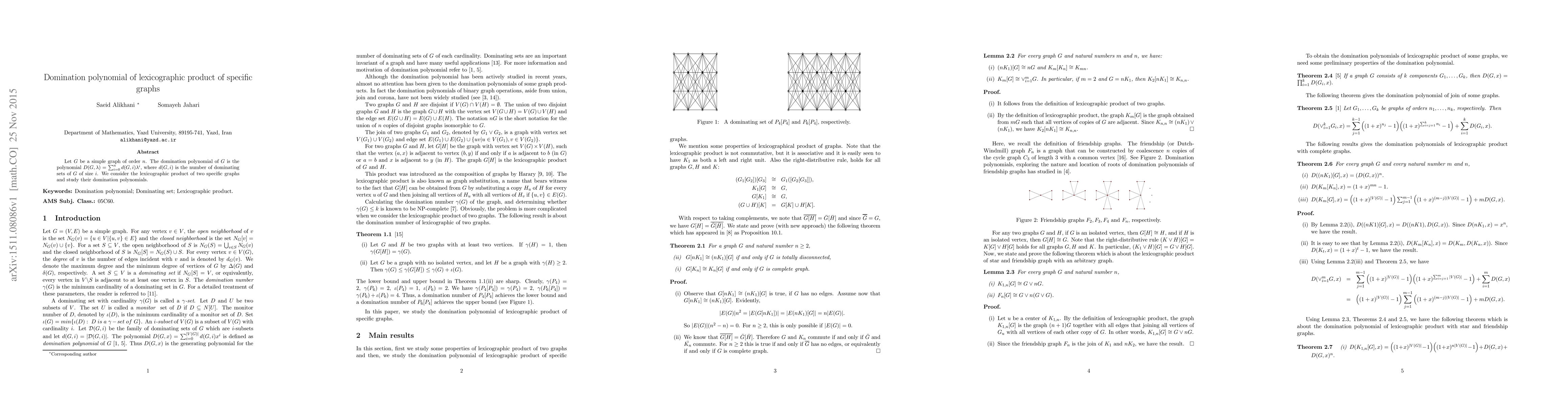 This paper investigates the domination polynomial of the lexicographic product of two specific graphs, defining the domination polynomial as a function that counts the number of dominating sets of a given size and examining its properties for these particular graph combinations.