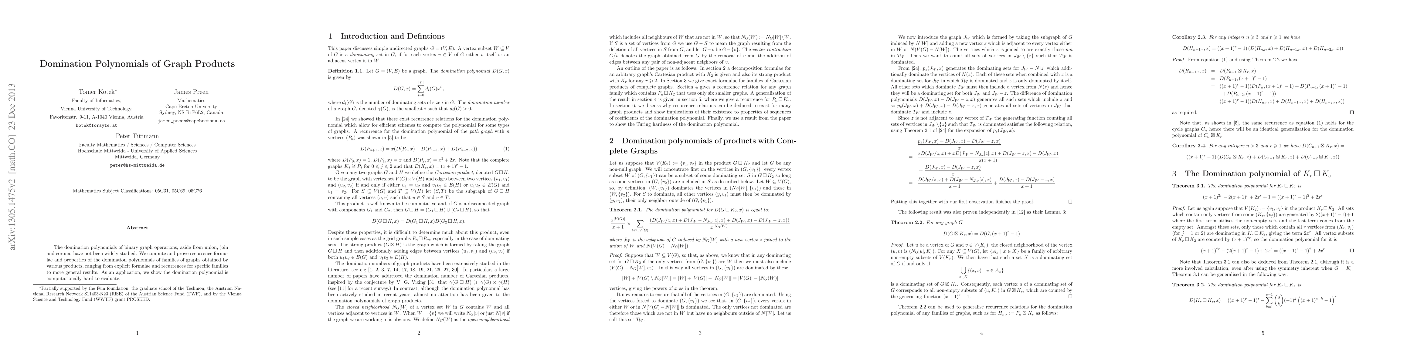 The domination polynomials of binary graph operations, aside from union, join and corona, have not been widely studied. We compute and prove recurrence formulae and properties of the domination polynomials of families of graphs obtained by various products, ranging from explicit formulae and recurrences for specific families to more general results. As an application, we show the domination polynomial is computationally hard to evaluate.