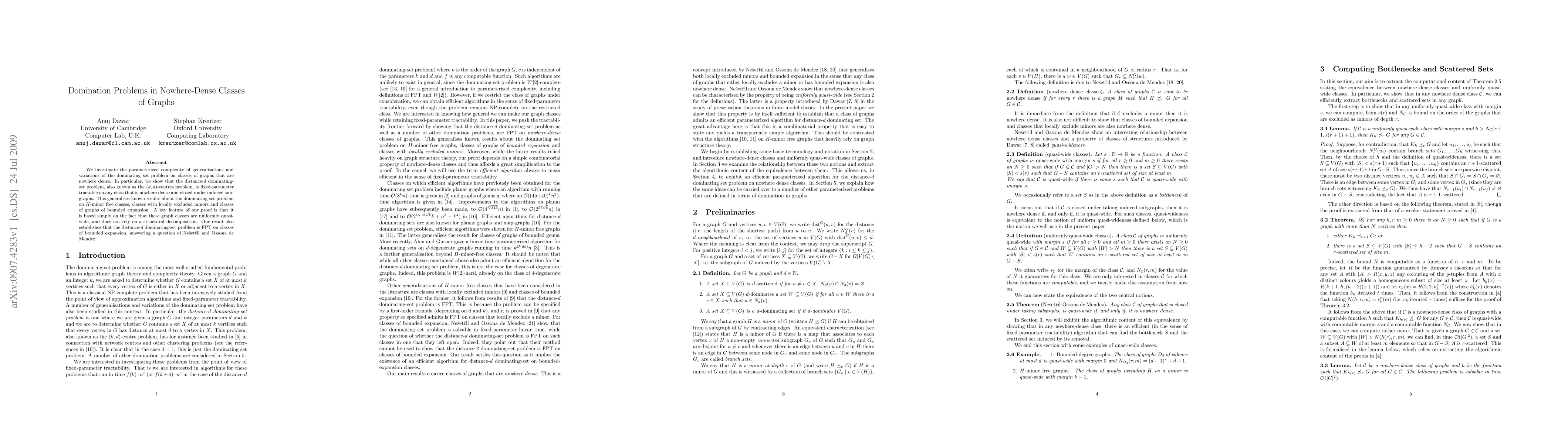 This paper demonstrates that the distance-d dominating-set problem is fixed-parameter tractable on nowhere-dense graph classes, generalizing results for H-minor free and bounded expansion graphs. The proof leverages the uniform quasi-width property without structural decomposition, resolving a question posed by Nešetřil and Ossona de Mendez.