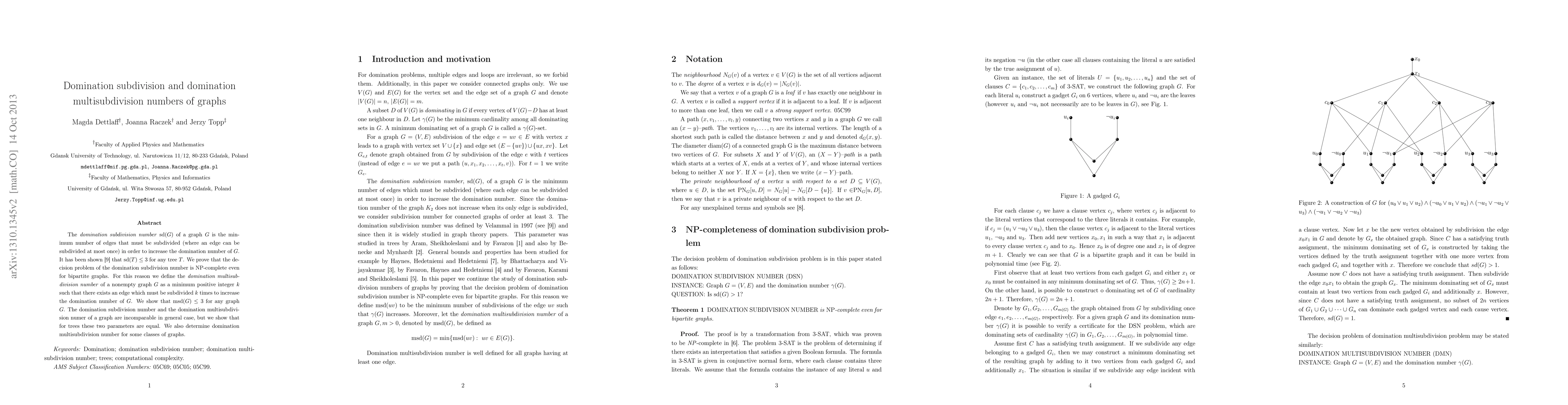 This paper explores the concepts of domination subdivision and domination multisubdivision numbers in graphs, proving that the decision problem for domination subdivision is NP-complete even for bipartite graphs. It introduces the domination multisubdivision number as a solution for complex cases and shows that it is always less than or equal to 3 for any graph.
