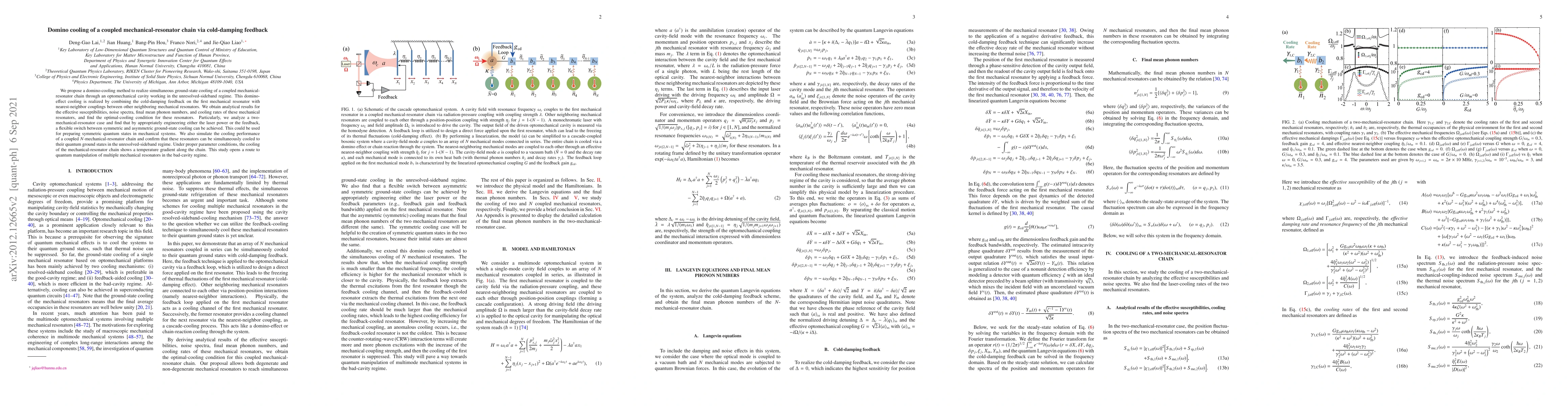 This paper proposes a domino-cooling method for simultaneously cooling a chain of coupled mechanical resonators via an optomechanical cavity, achieving ground-state cooling through cold-damping feedback and nearest-neighbor couplings. The study demonstrates flexible control over cooling symmetry and validates the method's effectiveness for multiple resonators in the unresolved-sideband regime.