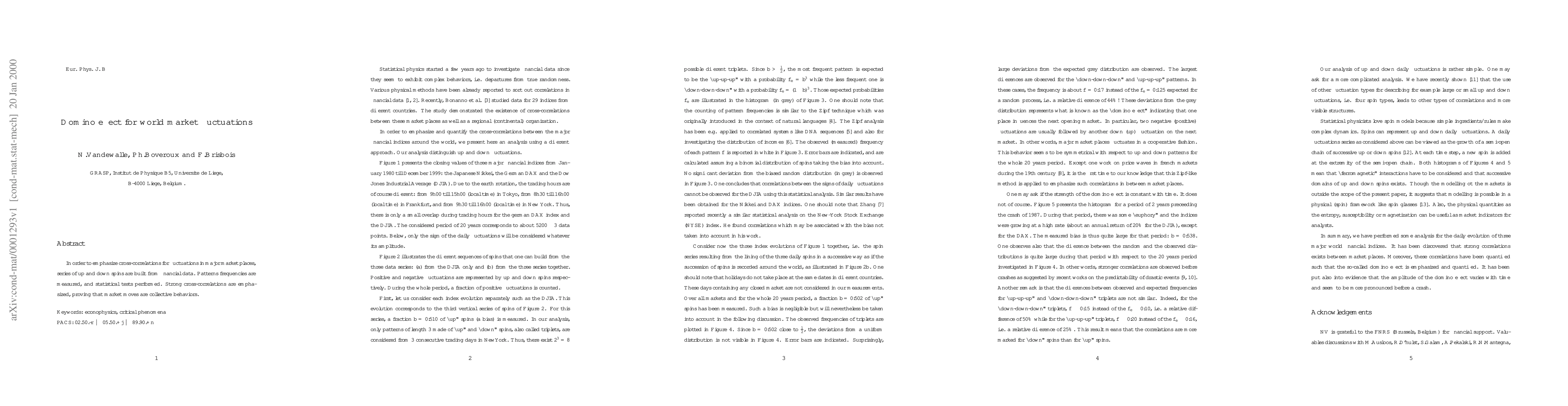 In order to emphasize cross-correlations for fluctuations in major market places, series of up and down spins are built from financial data. Patterns frequencies are measured, and statistical tests performed. Strong cross-correlations are emphasized, proving that market moves are collective behaviors.