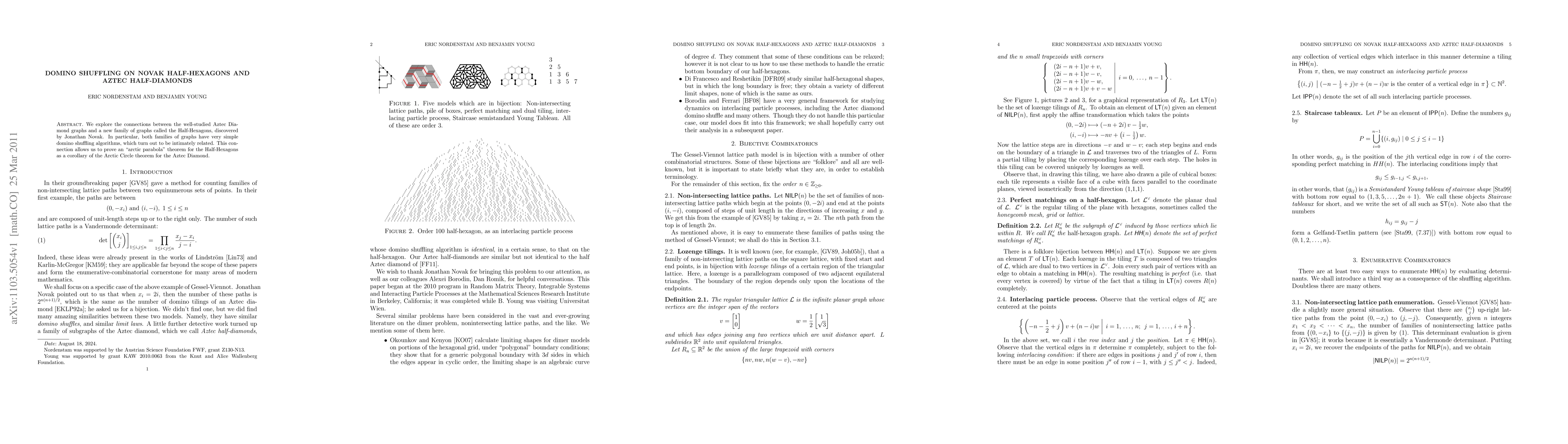 We explore the connections between the well-studied Aztec Diamond graphs and a new family of graphs called the Half-Hexagons, discovered by Jonathan Novak. In particular, both families of graphs have very simple domino shuffling algorithms, which turn out to be intimately related. This connection allows us to prove an "arctic parabola" theorem for the Half-Hexagons as a corollary of the Arctic Circle theorem for the Aztec Diamond.