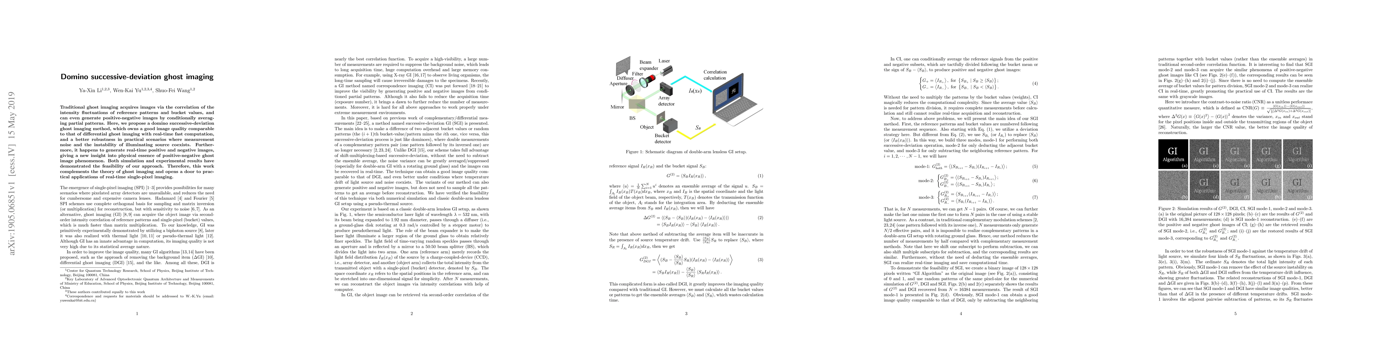 This paper proposes a domino successive-deviation ghost imaging method that offers high image quality and real-time computation, along with improved robustness against noise and source instability. It generates real-time positive and negative images, enhancing the understanding of ghost imaging phenomena.