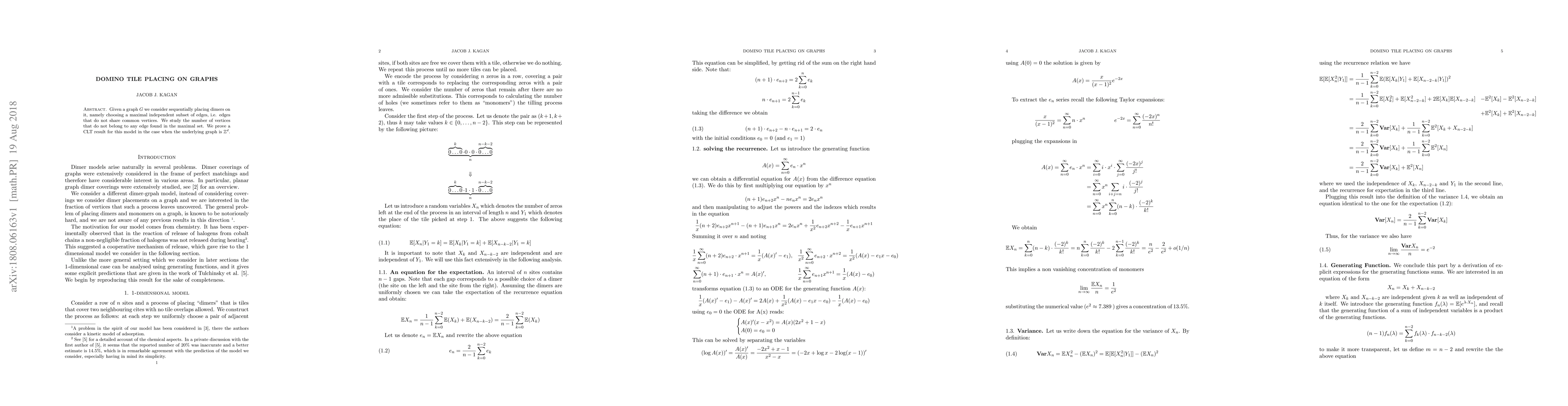 Researchers studied a method of placing domino tiles on graphs, finding that in a specific case - a 3D grid - the number of vertices not connected to any edge follows a normal distribution under certain conditions.